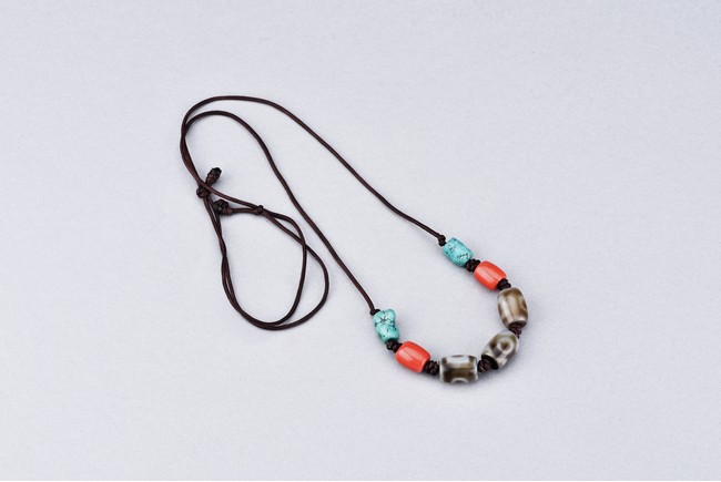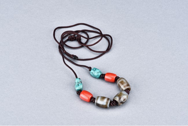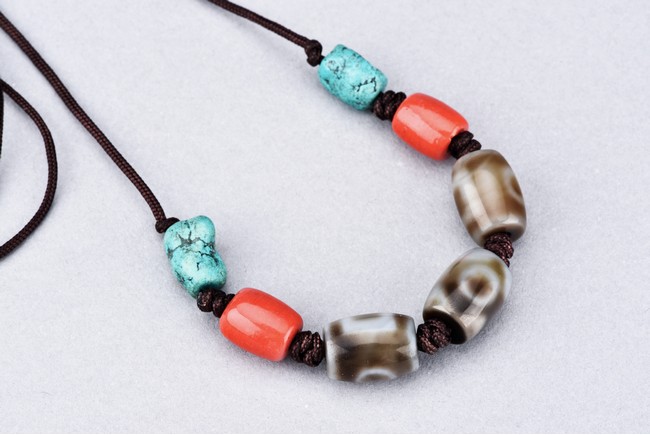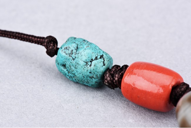A DZI BEAD AND TURQUOISE NECKLACE 天珠綠松石項鏈
