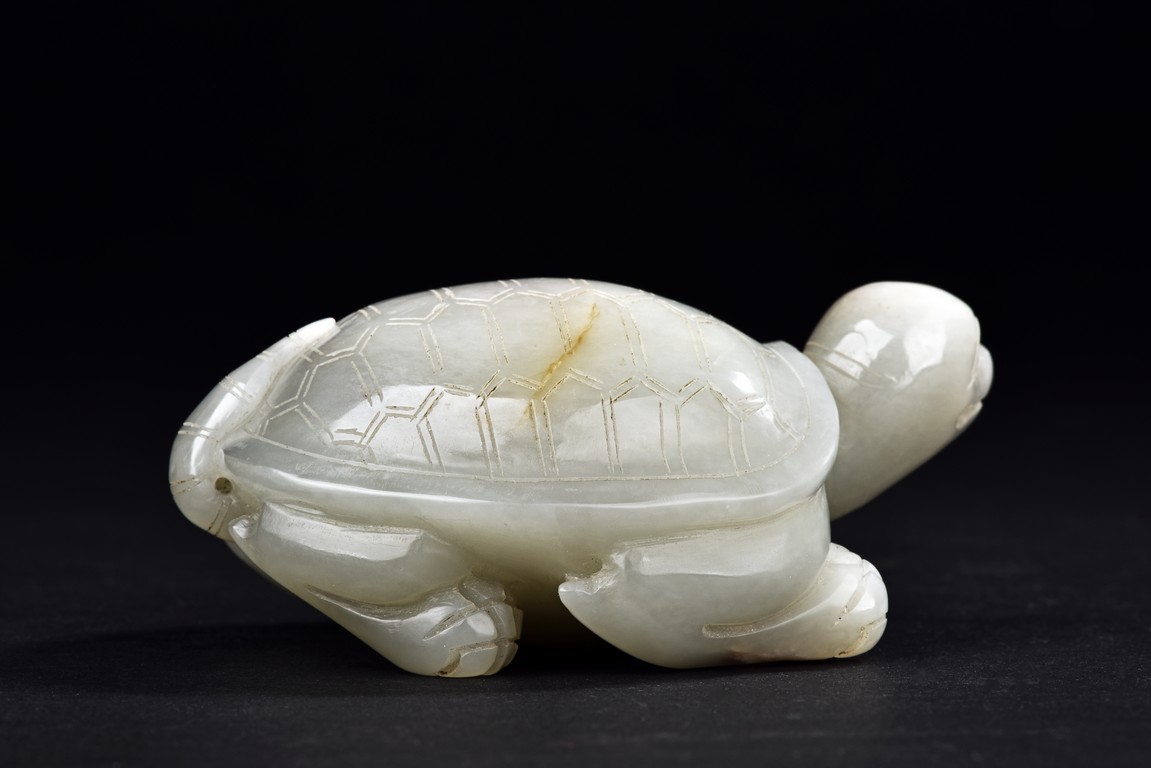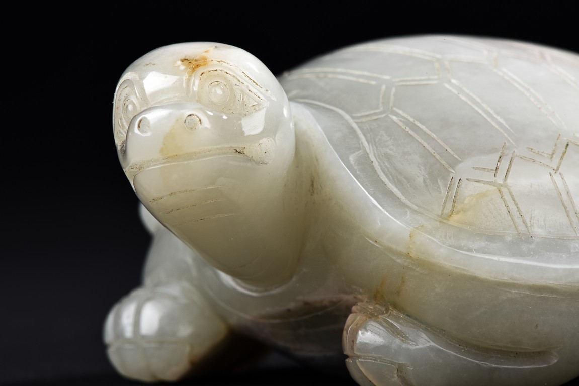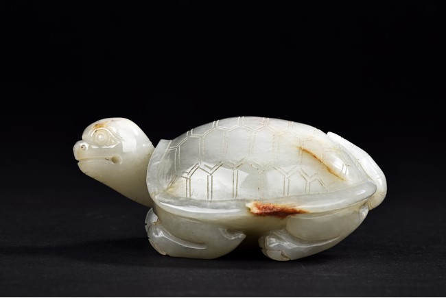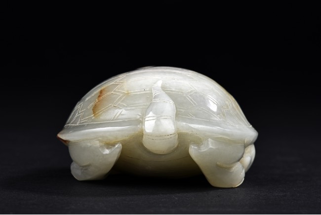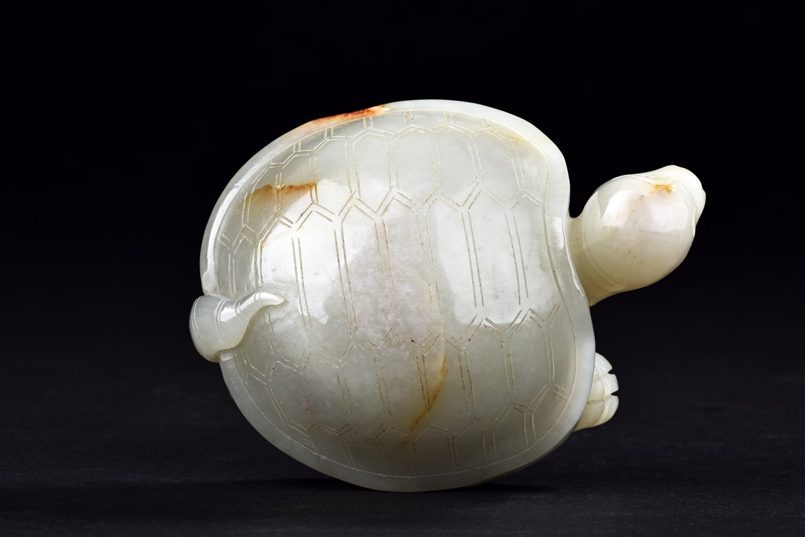 Carved in the form of turtle. Stone with russet patches and inclusions.