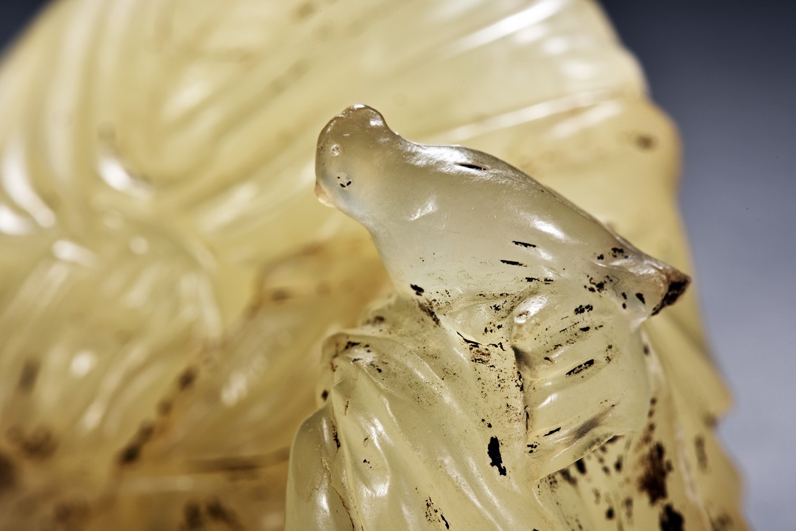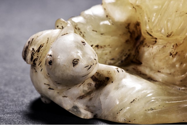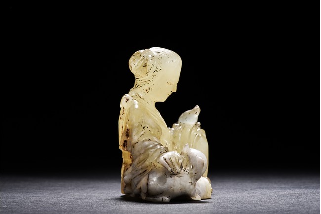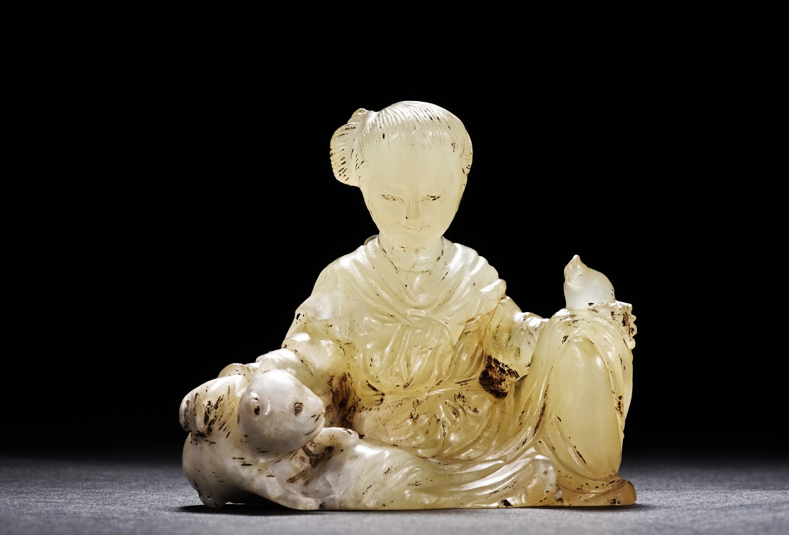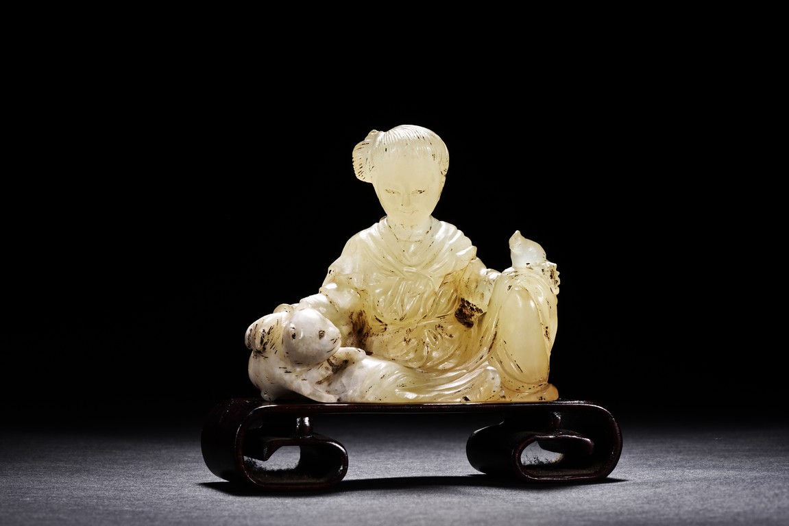 A JADE CARVING OF LADY AND CAT 玉雕人物擺件