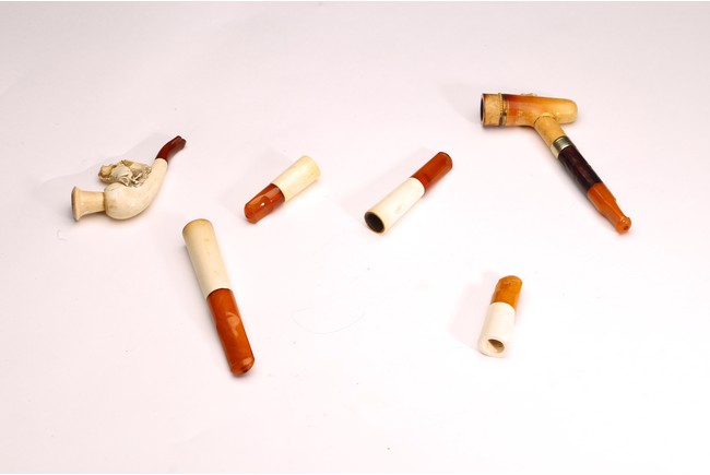 A SET OF 6 AMBER CIGARETTE HOLDERS 19世紀蜜蠟海泡石煙嘴六件