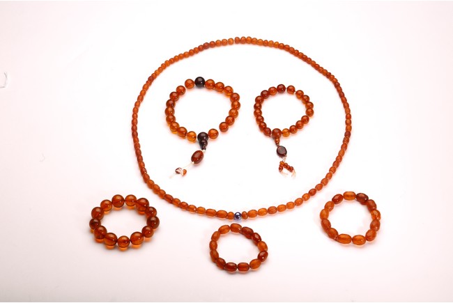 19th C/Early 20th C. Comprising of five amber bead bracelets and one amber bead necklace with high translucency.