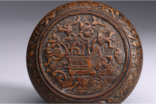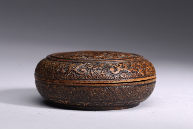 Qing Dynasty. Circular shape. Carved with bogu pattern on the cover in relief.