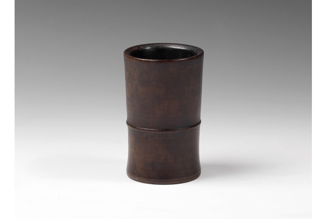 Qing Dynasty period. The hardwood brushpot was carved to depict a section of bamboo.
