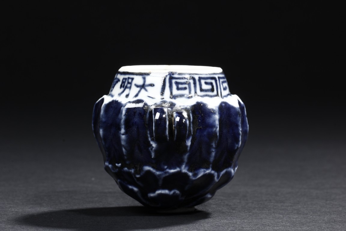 A BLUE AND WHITE BIRD FEEDER 清 青花鳥食杯