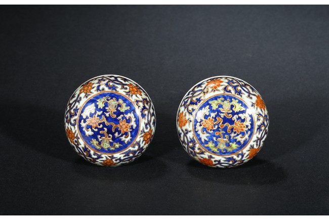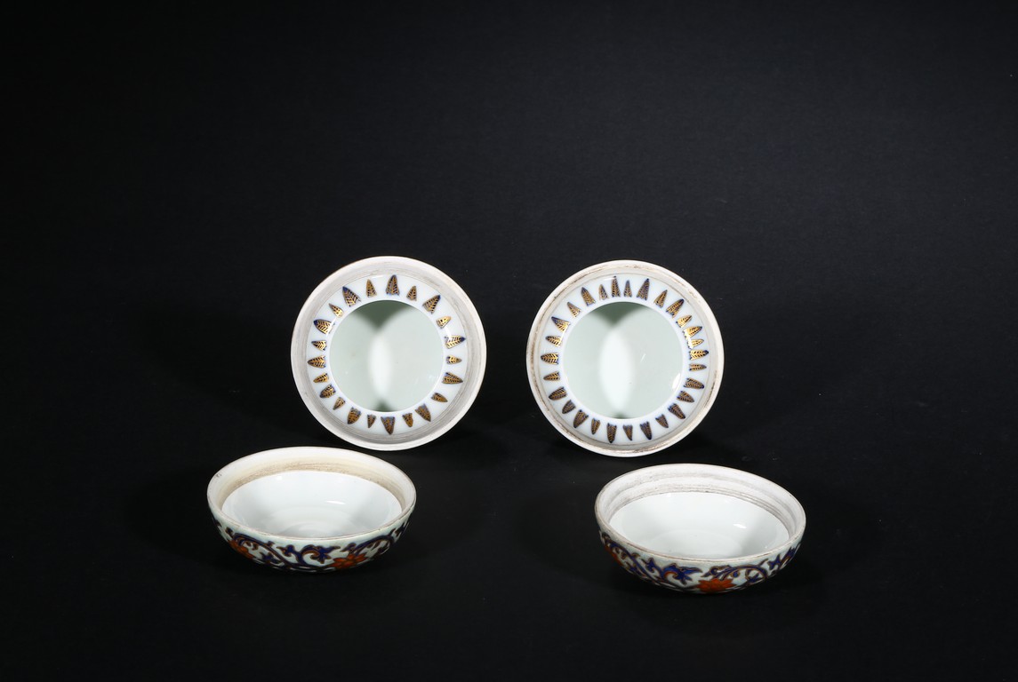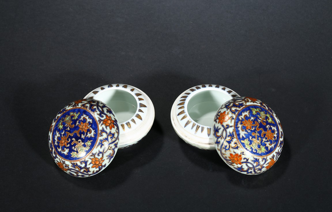 PAIR OF PAINTED PORCELAIN INK PASTE BOXES 描金瓷印泥盒一對