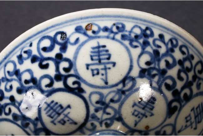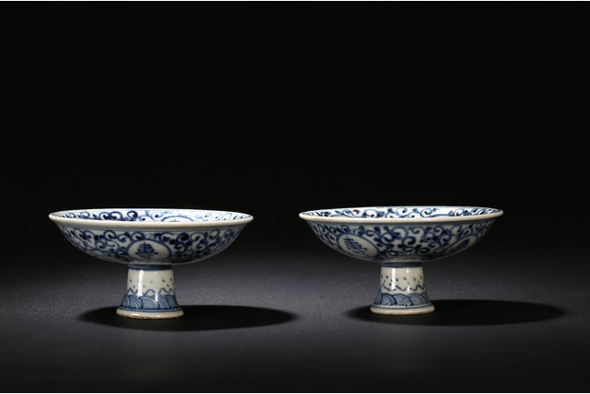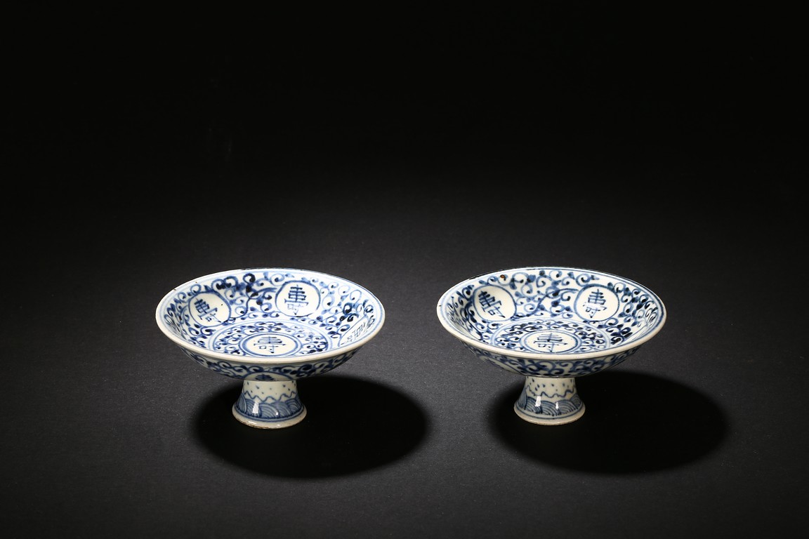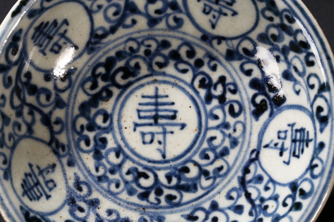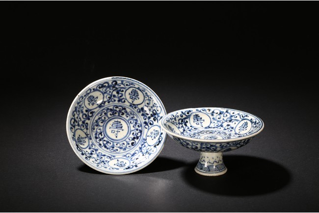 Qing Dynasty period. Each dish interior decorated with shou character medallions spaced by stylized lotus scrolls.