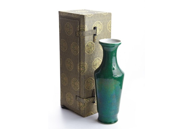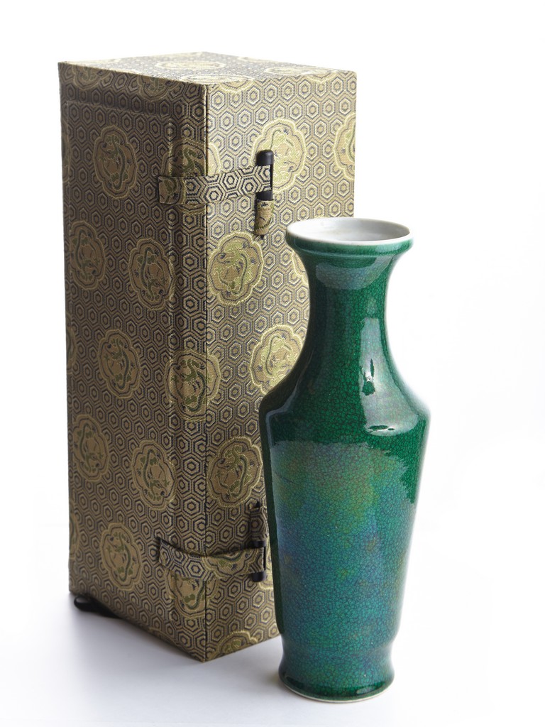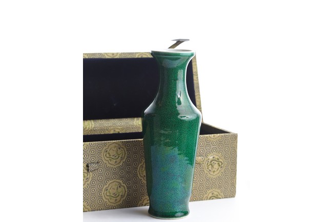 A GREEN GLAZED CRACKLE PATTERN VASE 綠釉開片瓷小瓶