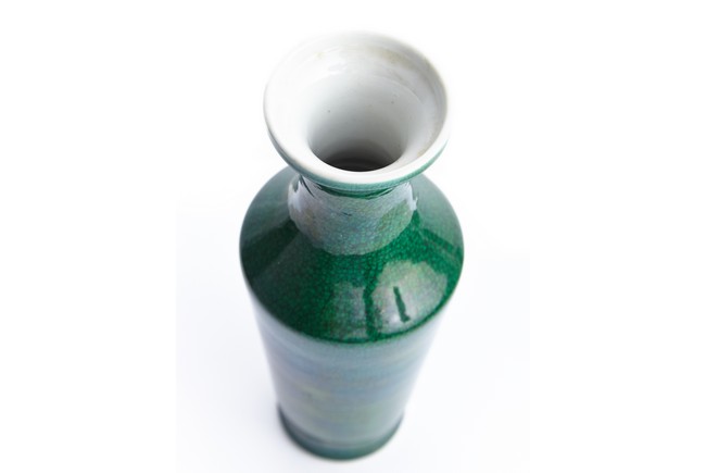Overall suffused in green glaze with crackle pattern.