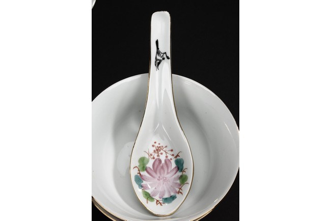 Dimension: Bowl D:4 5/8 in (11.8 cm) Dish D:3 7/8 in (9.9 cm)Spoon L: 5 3/4 in (15 cm)