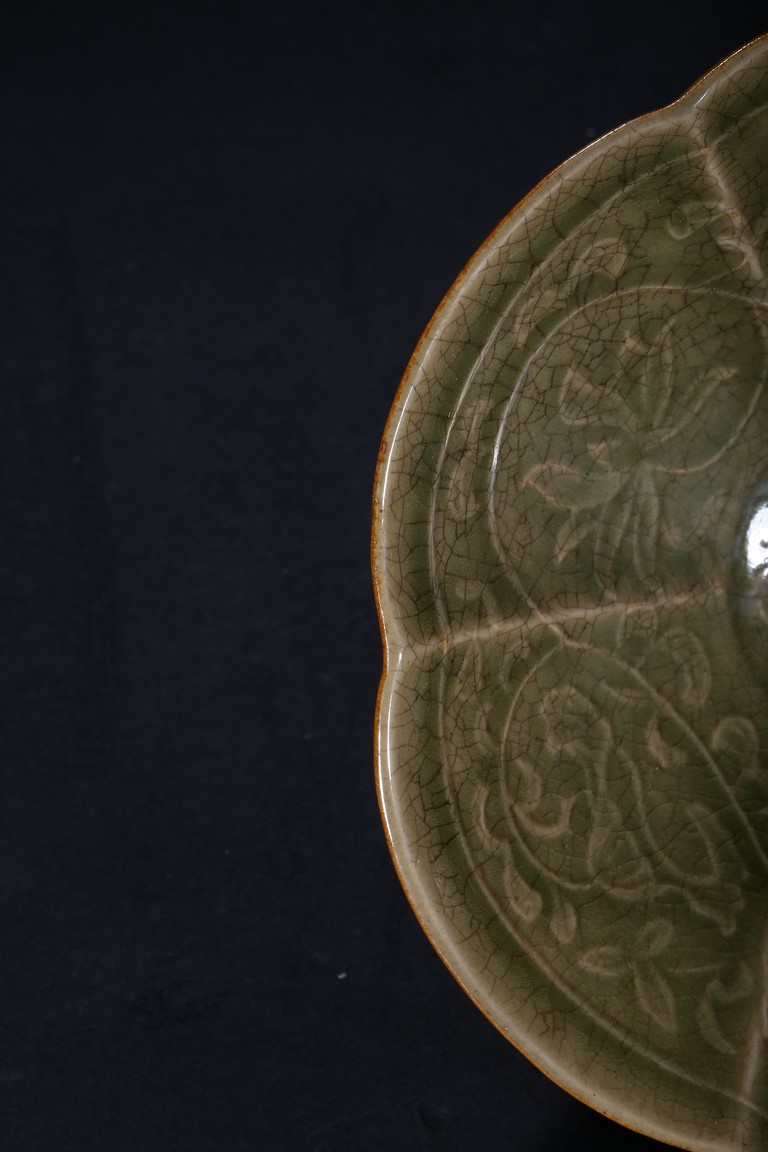 A CELADON MALLOW SHAPE BRUSH WASHER 清 耀州窯葵花碗