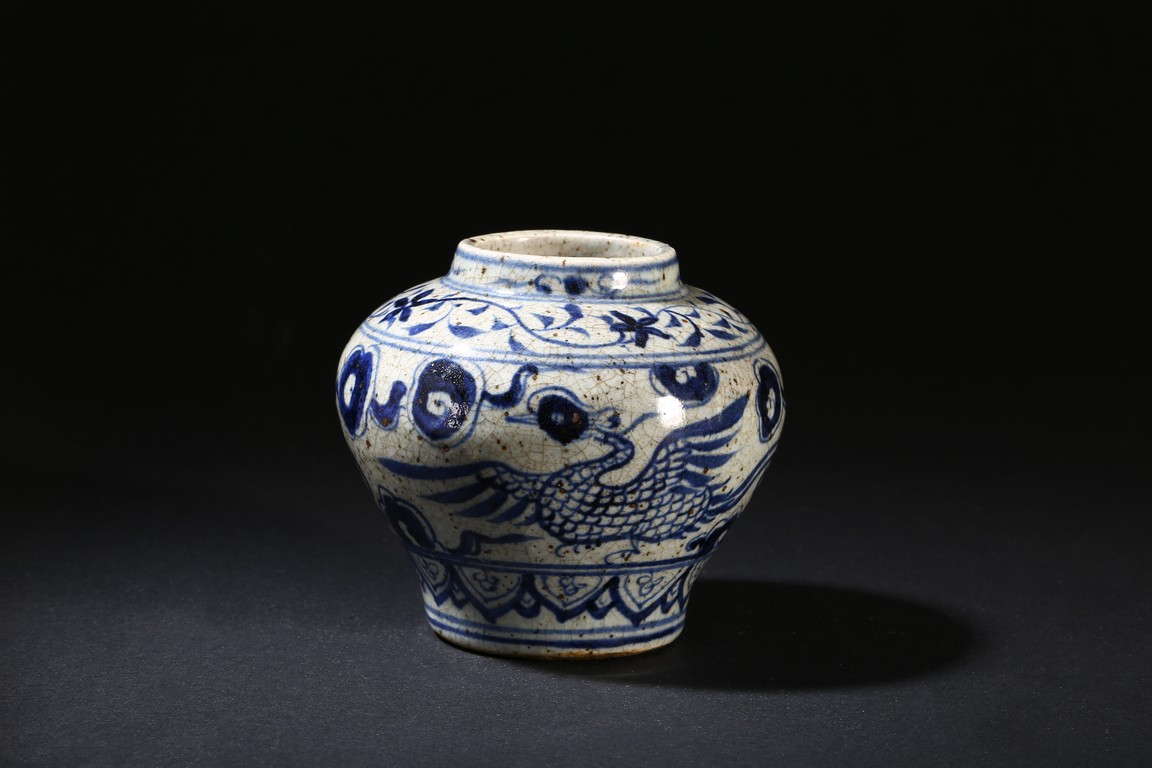 A BLUE AND WHITE 'PHOENIX' JAR 青花鳳紋小罐