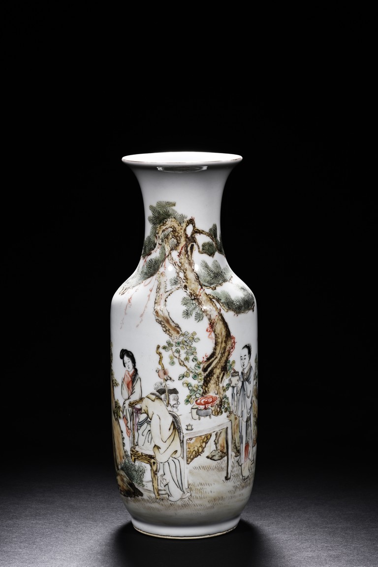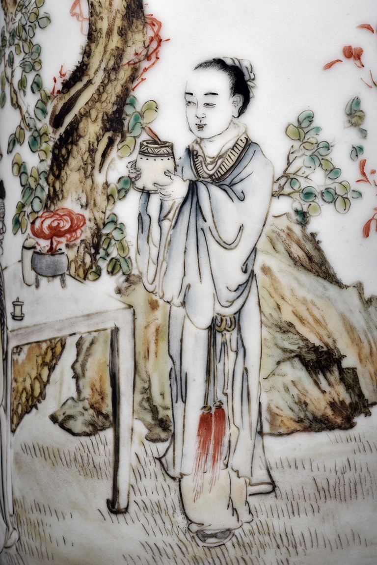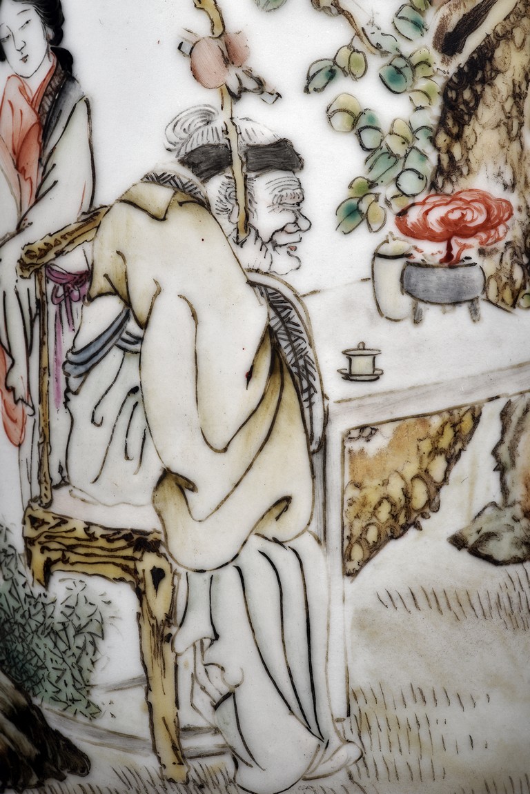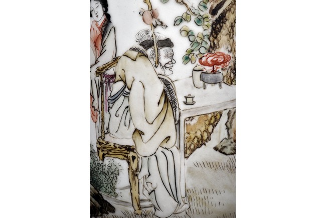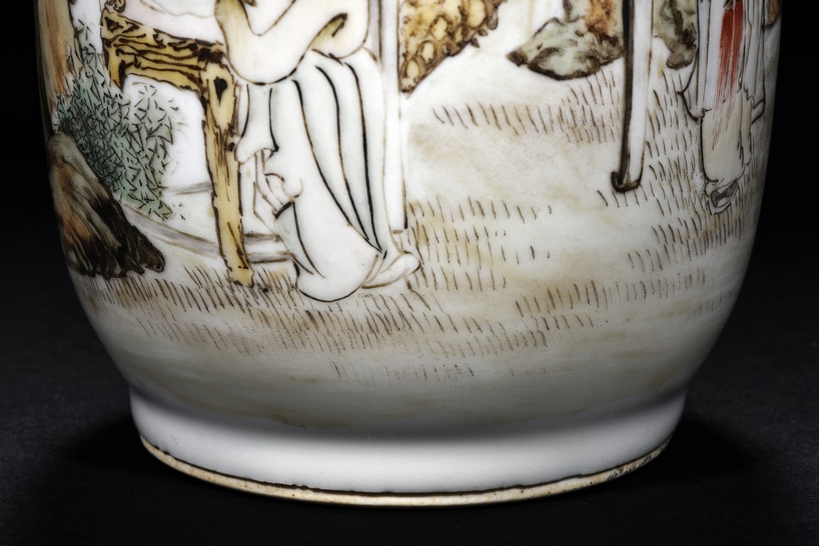 Late 19th c./Early 20th c. Body painted with figures and inscriptions, signed Qian An with a seal mark.