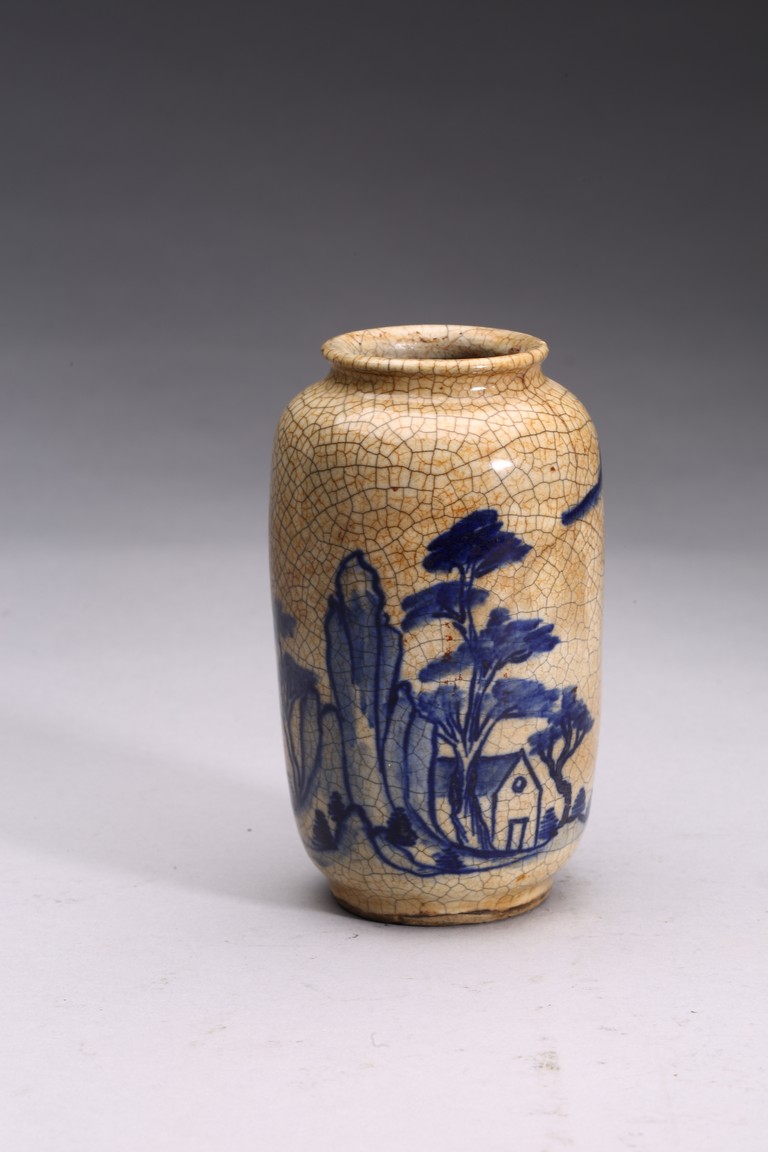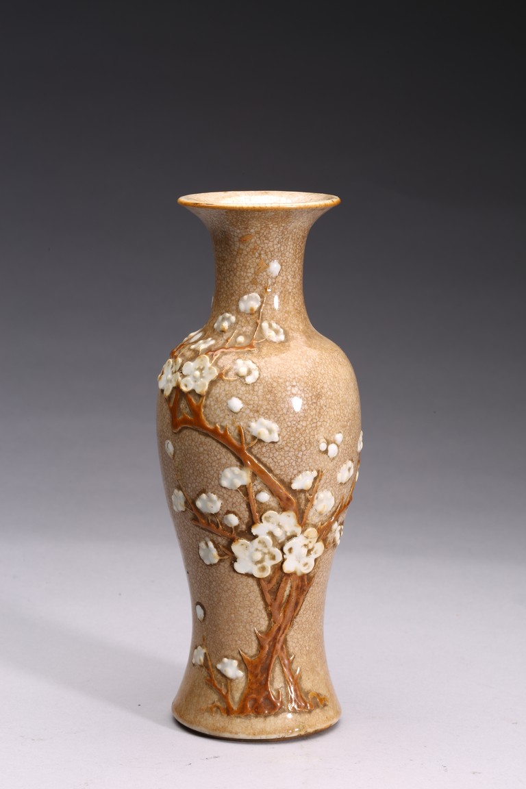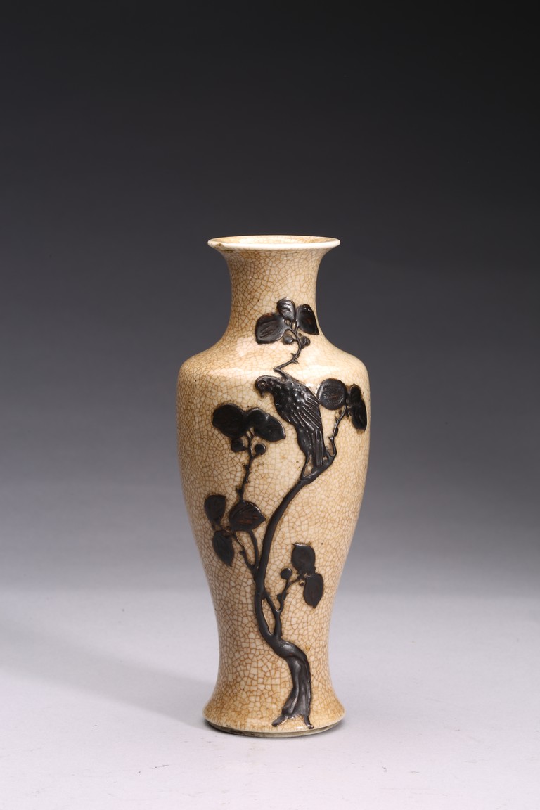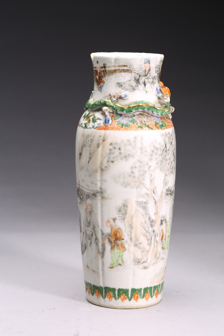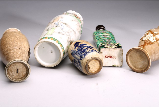 Late 19th c./Early 20th c. Comprising of four porcelain vases of various forms and a famille verte figure of lu star.