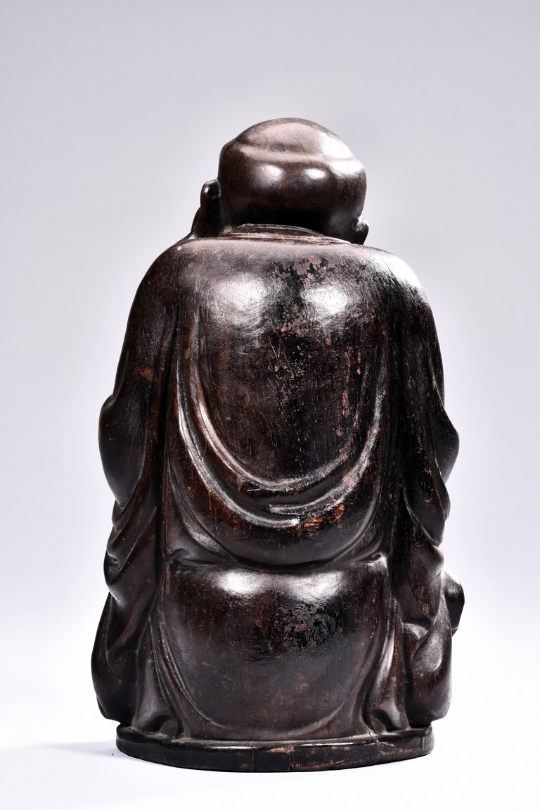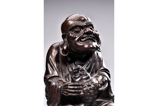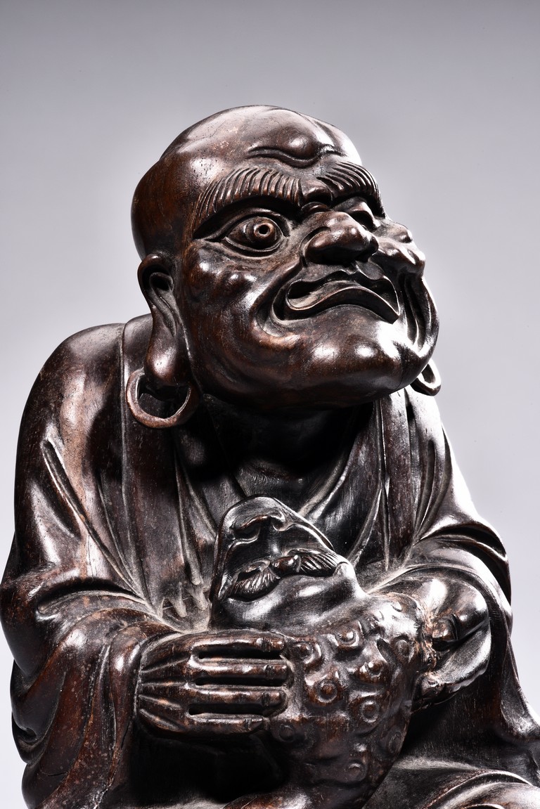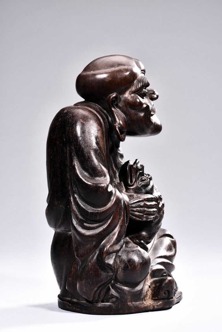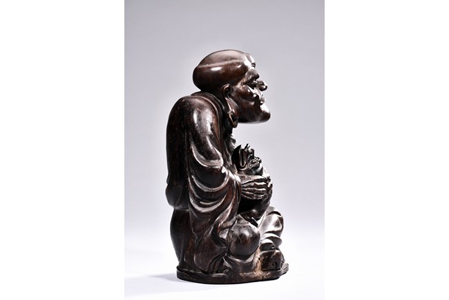 A HARDWOOD FIGURE OF LIU HAI AND TOAD 紅木雕劉海戲金蟾