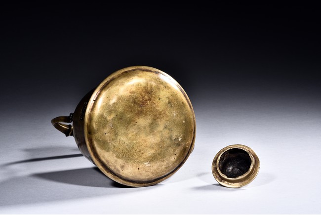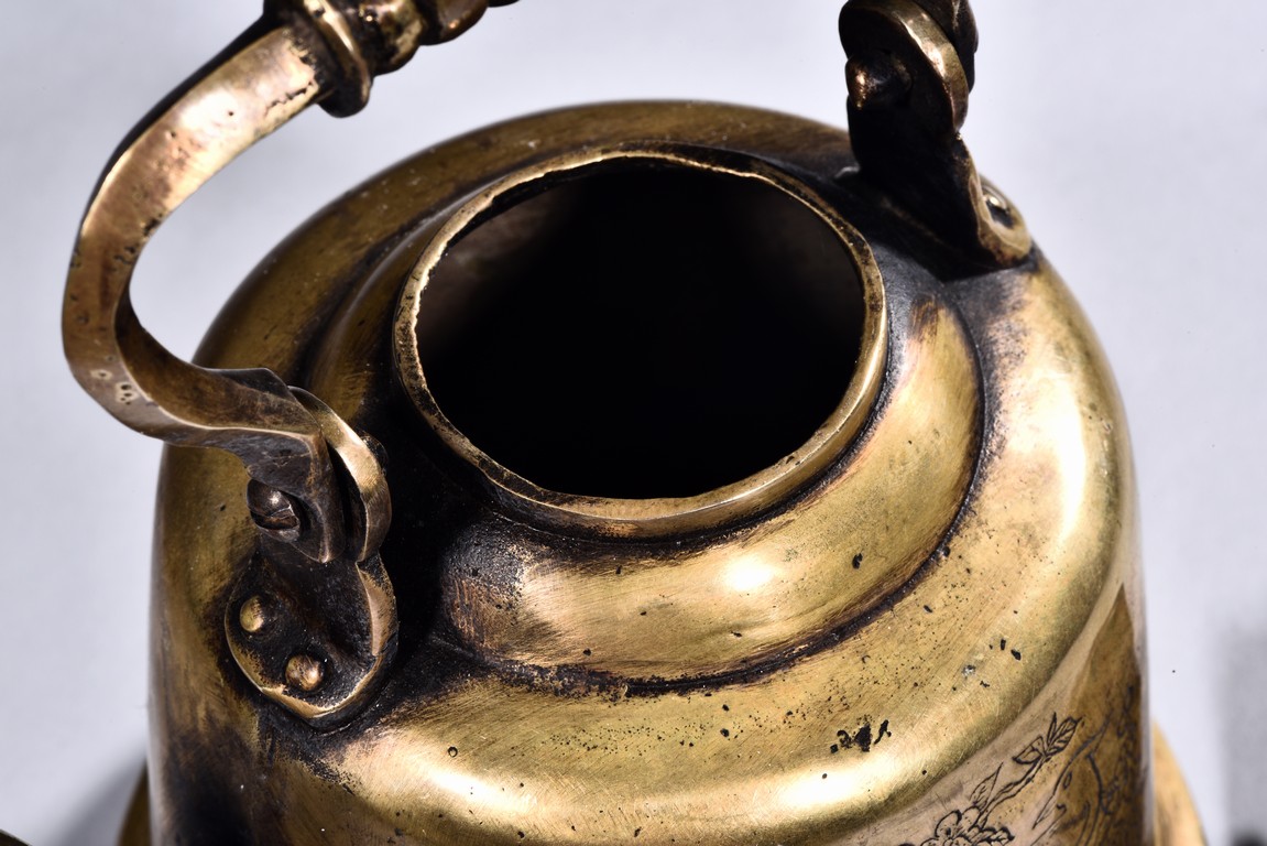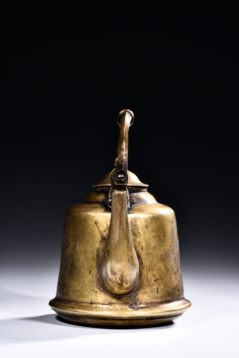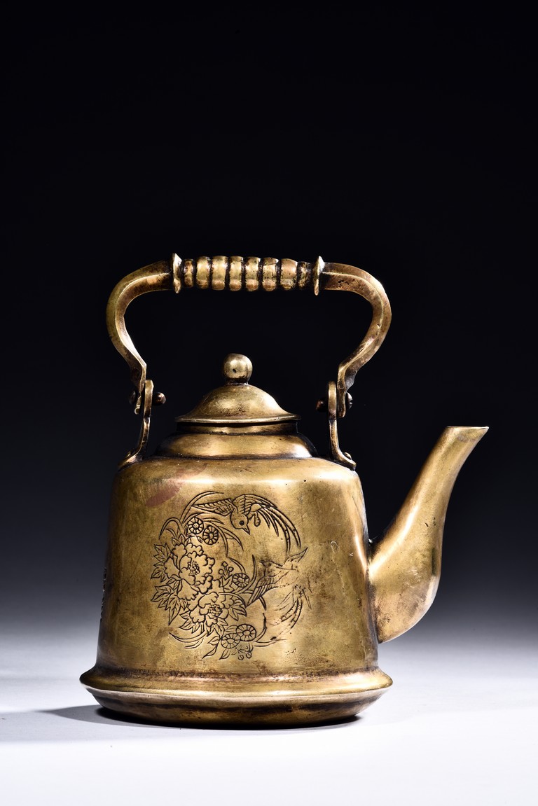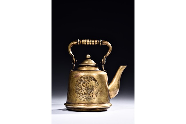 A BRONZE 'BIRDS AND FLOWERS' EWER    銅簪花提樑壺