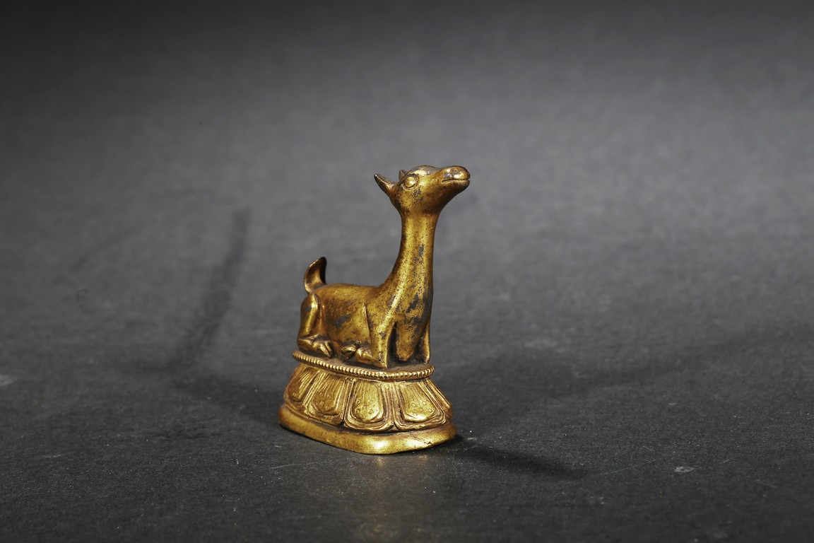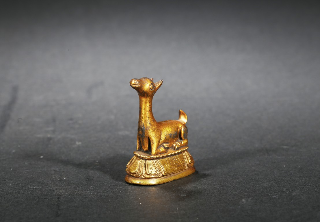 A GILT BRONZE STATUE OF DEER 銅鎏金小鹿