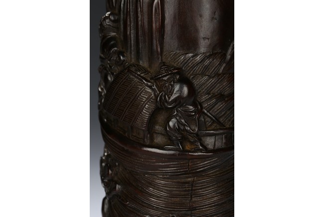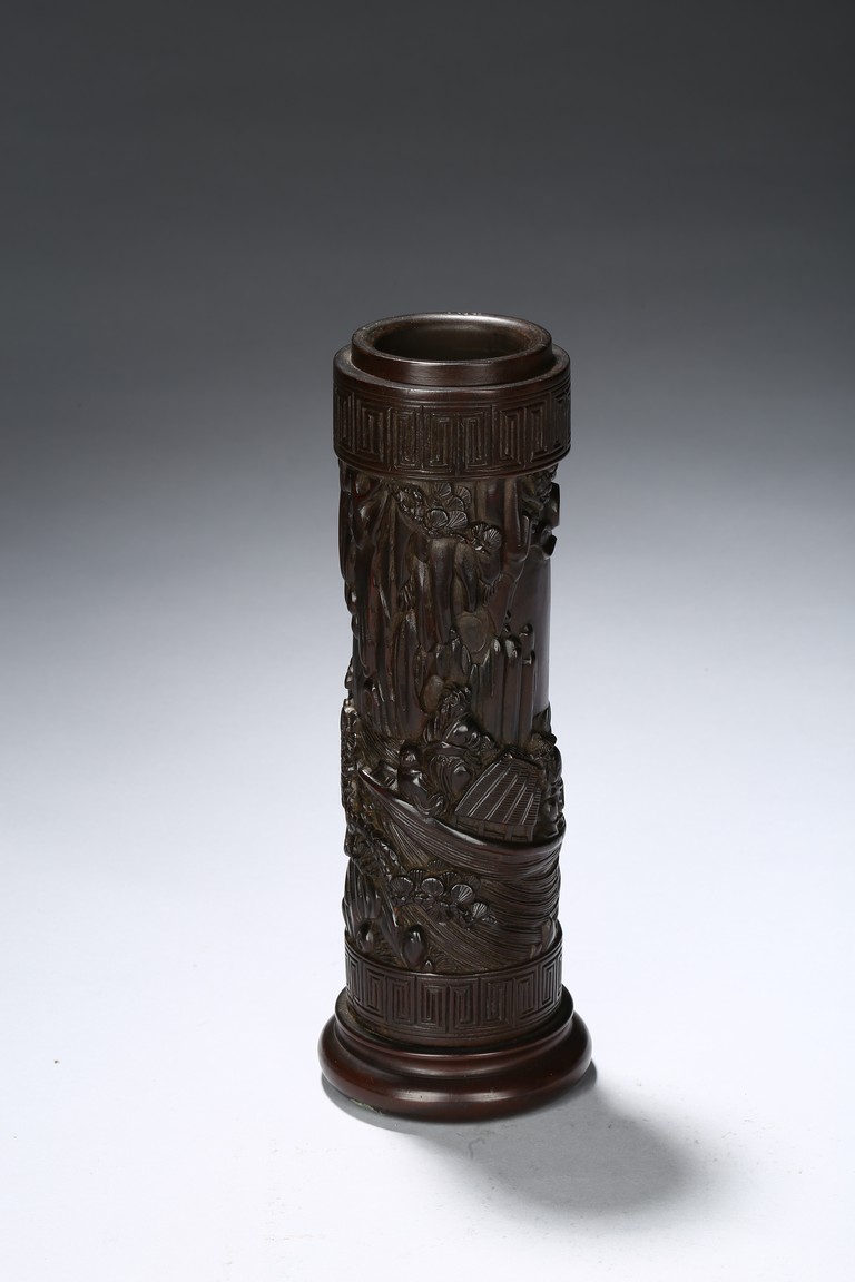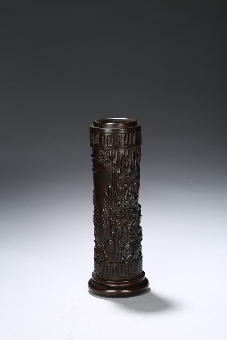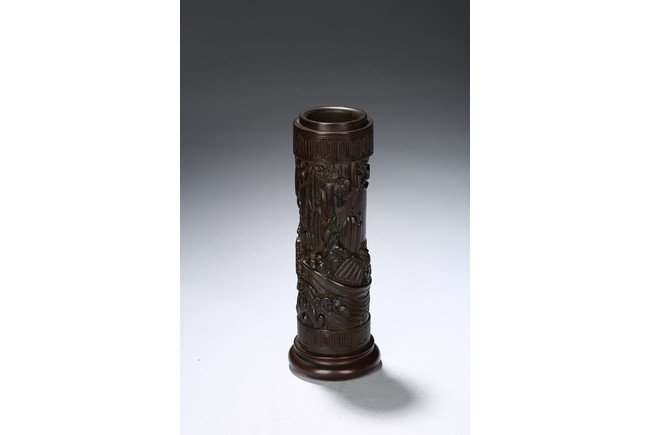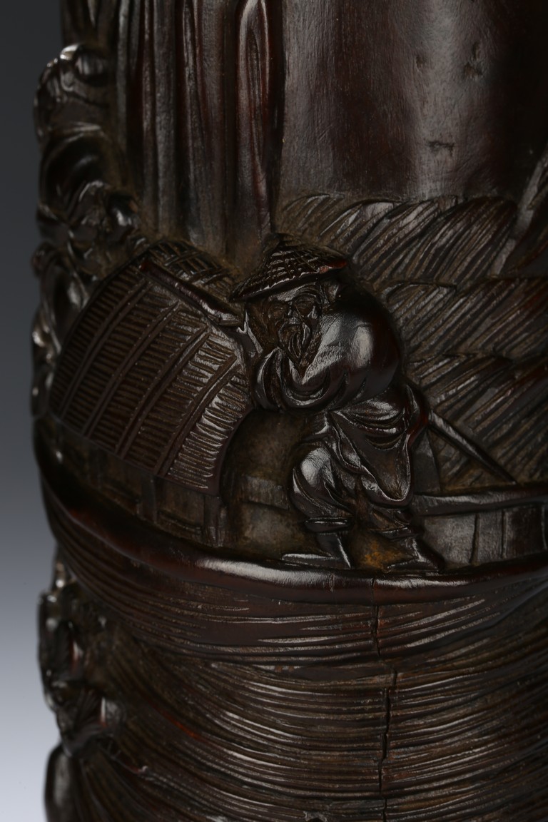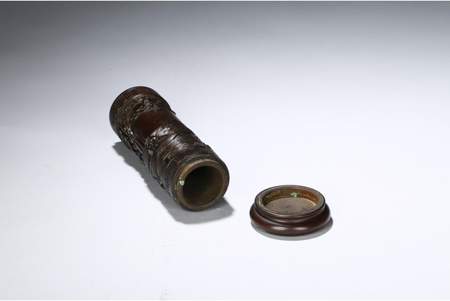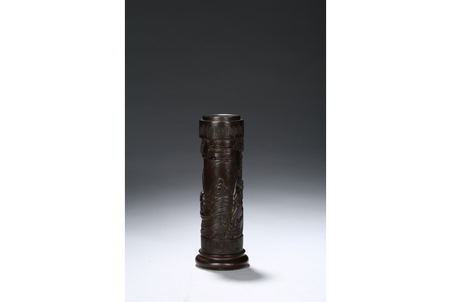 A BAMBOO CARVED 'LITERATI' INCENSE HOLDER 竹雕松下高士圖香筒