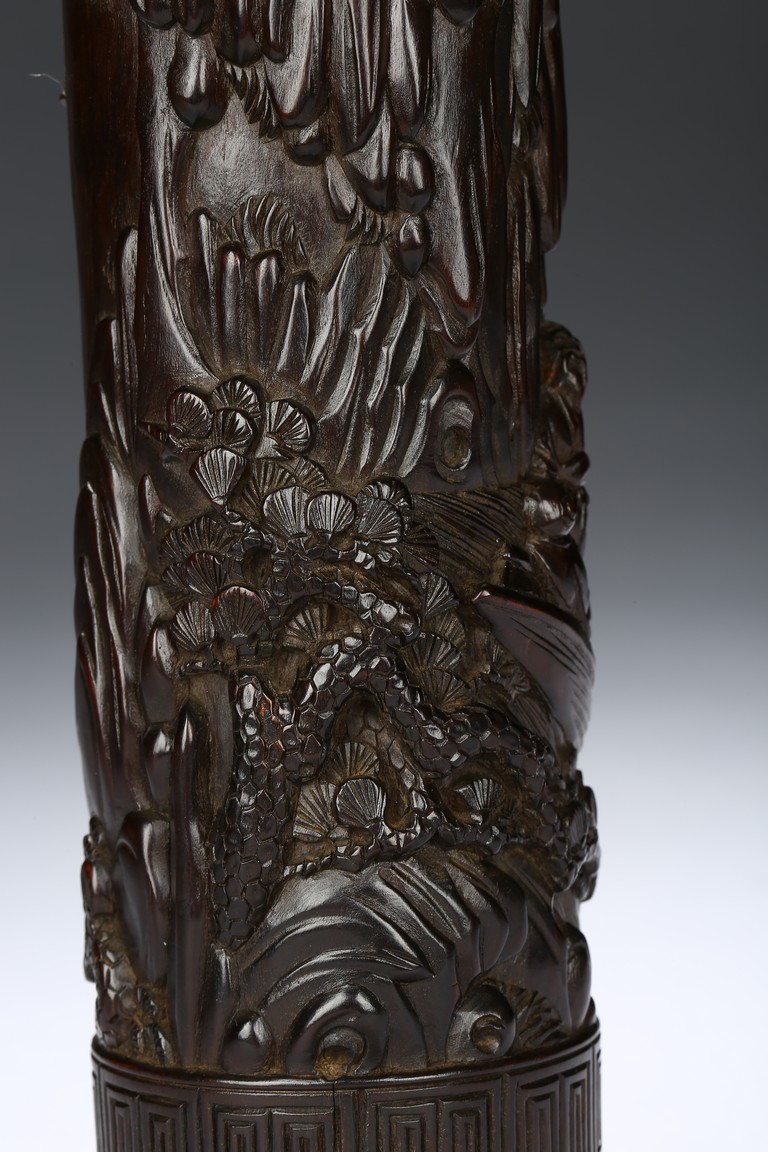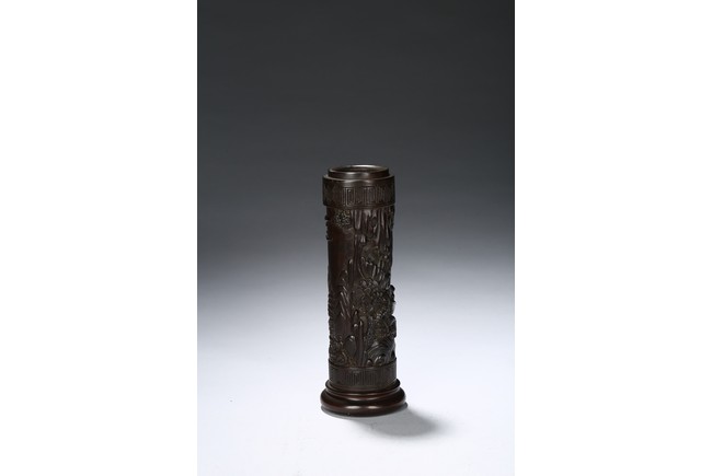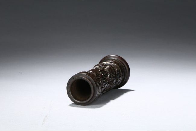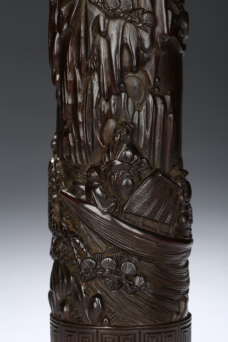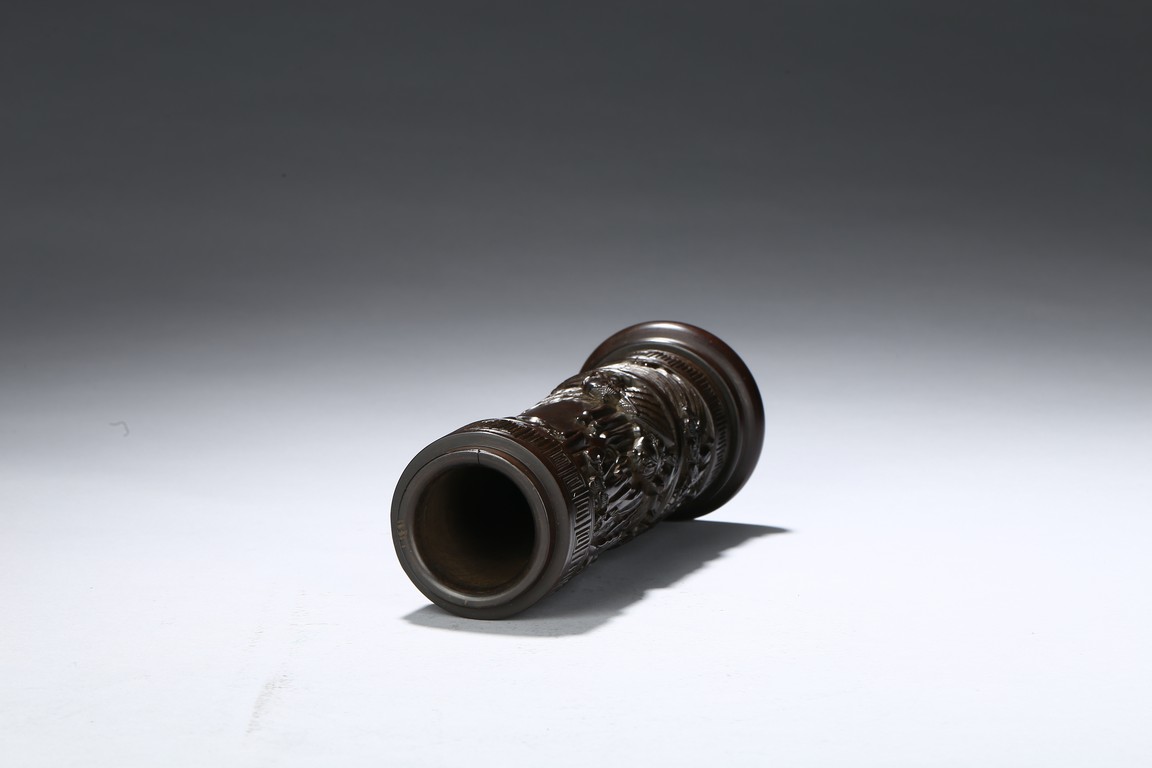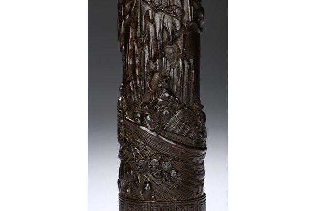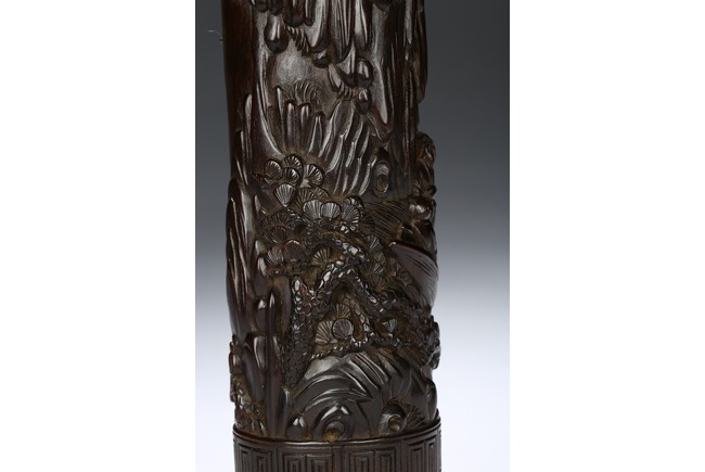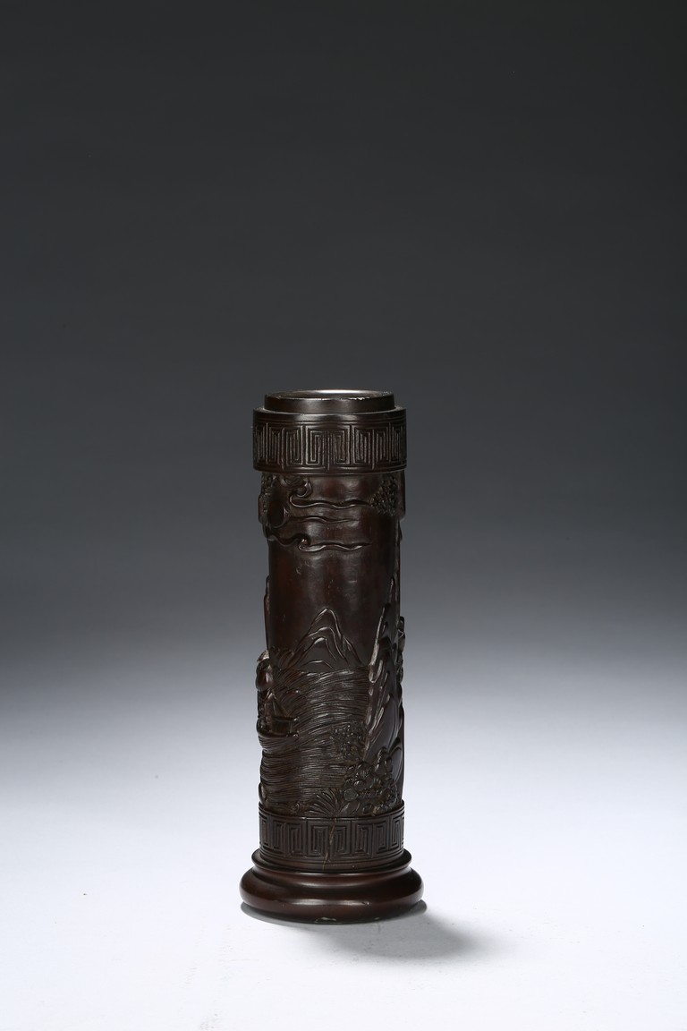 A BAMBOO CARVED 'LITERATI' INCENSE HOLDER 竹雕松下高士圖香筒