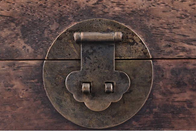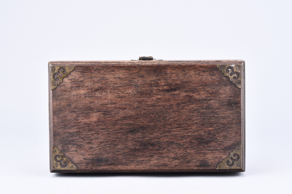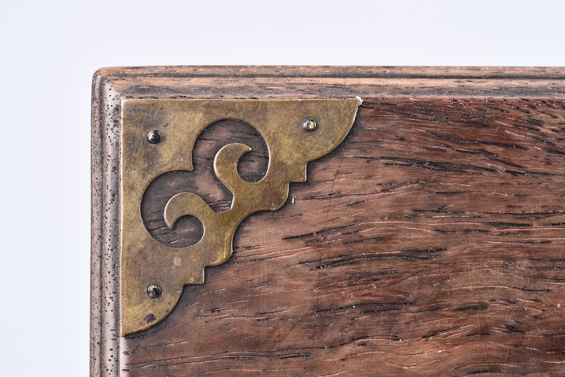 Of rectangle shape, the top with ruyi shaped corner mount, the front fitted with lockplate and ruyi shaped hasp.