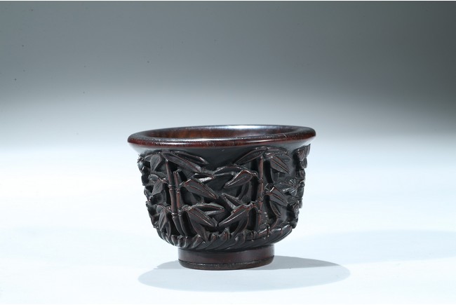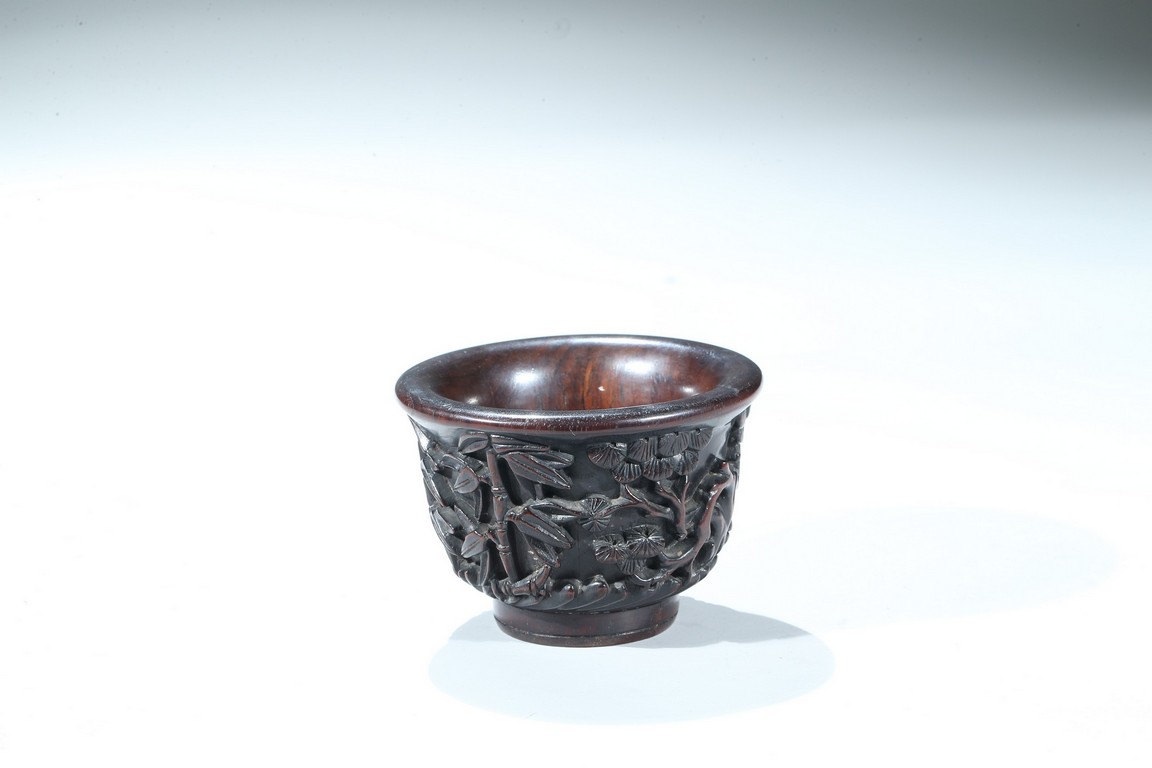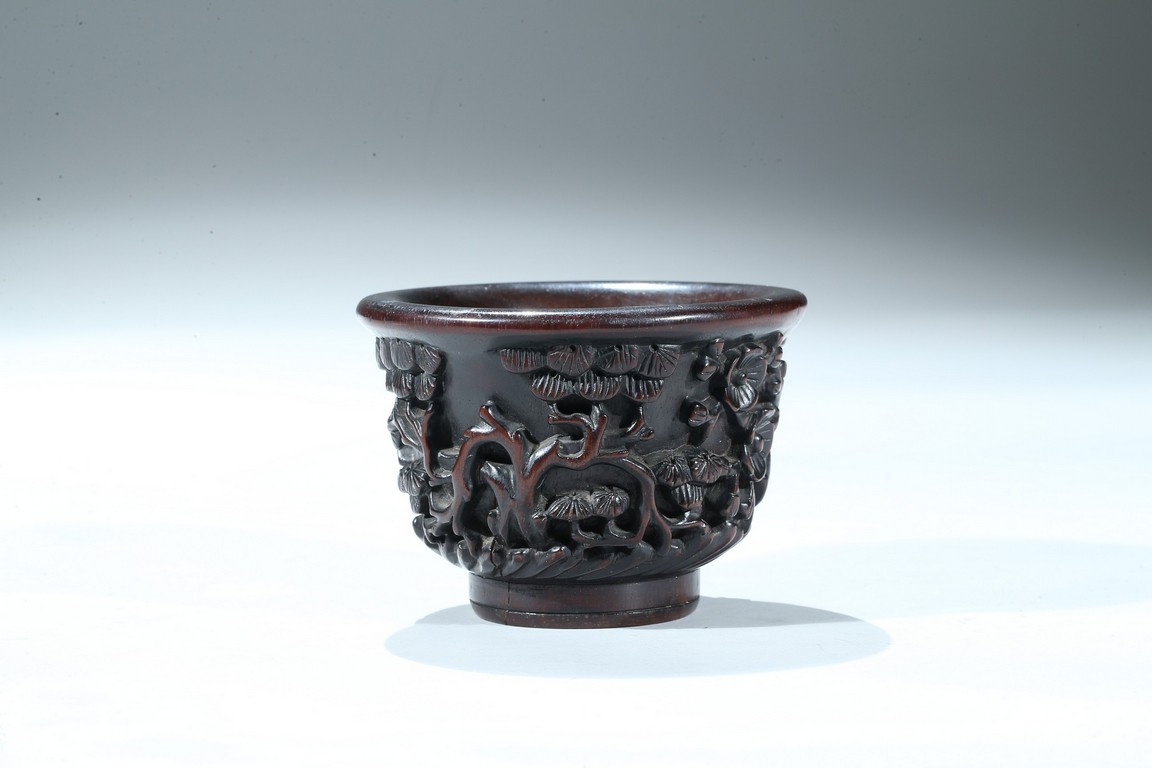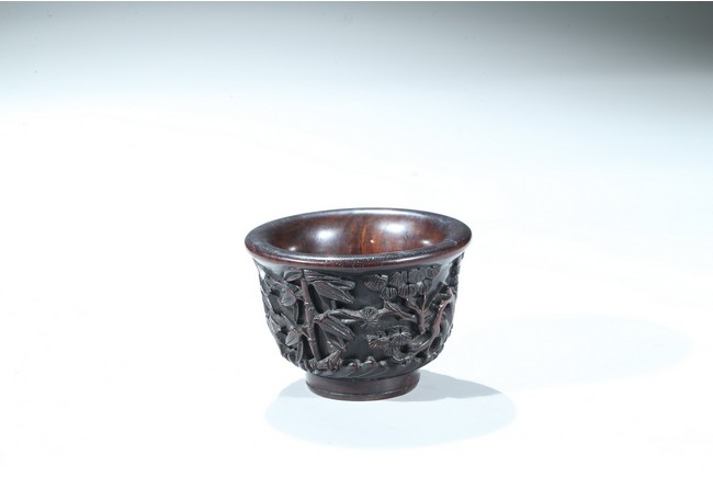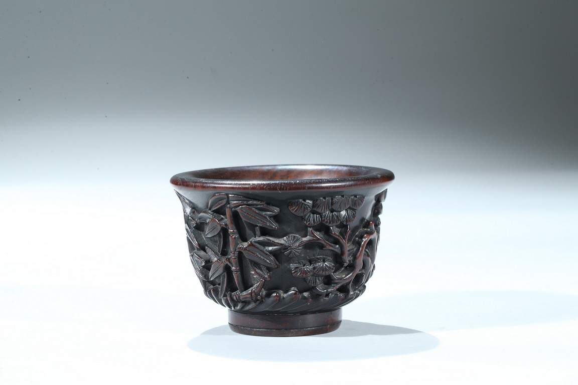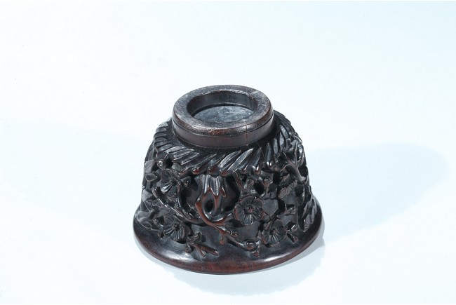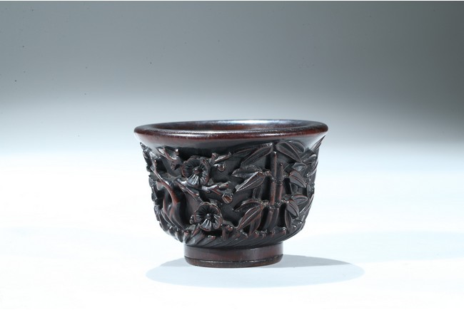Republic period. Of deep sides rising to a flared rim, body carved in relief with the four plants including bamboo, plum blossom, chrysanthemum, and orchids.