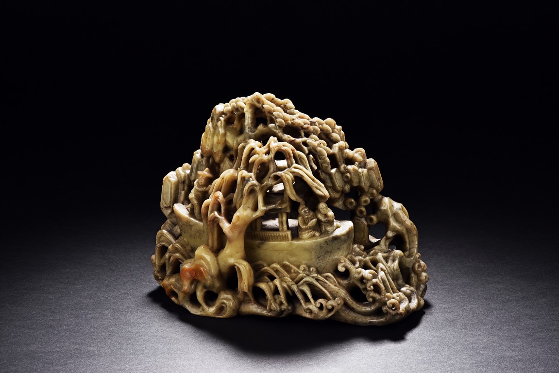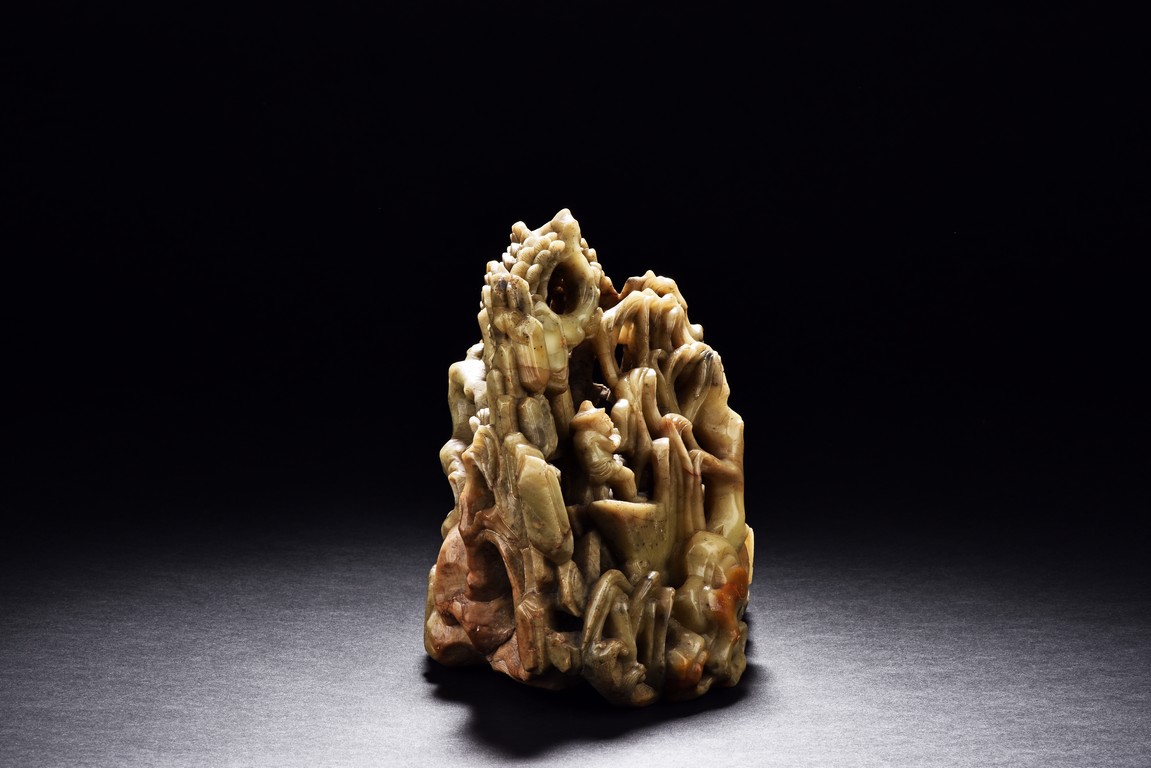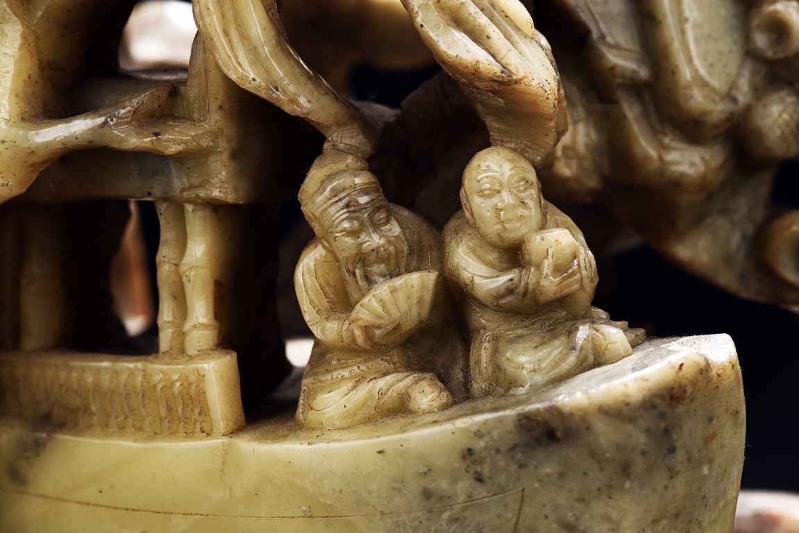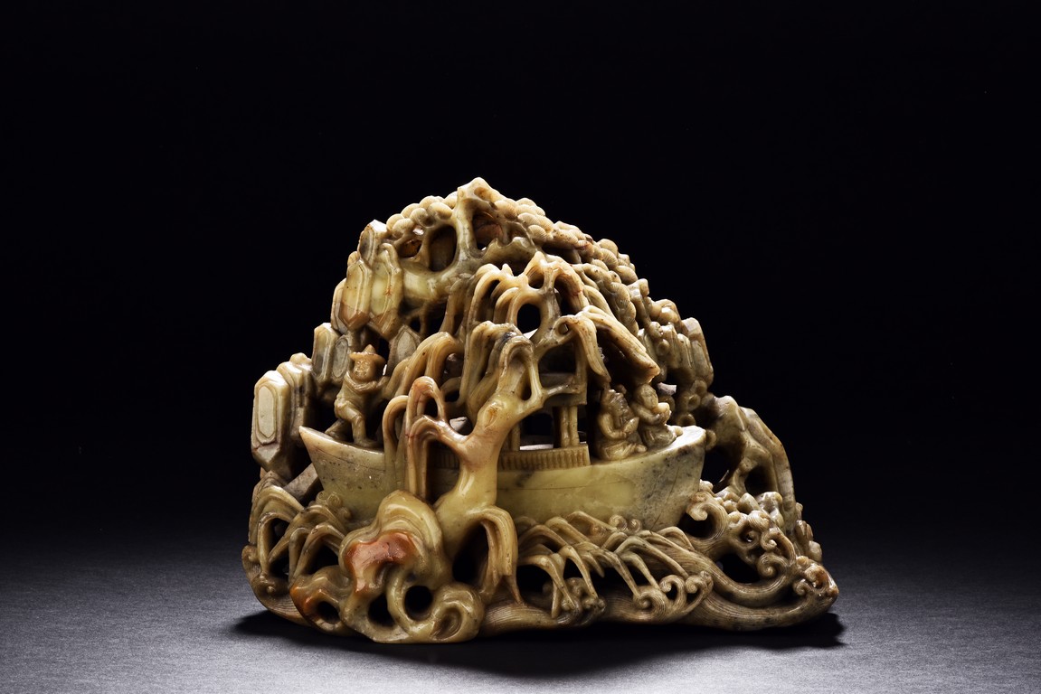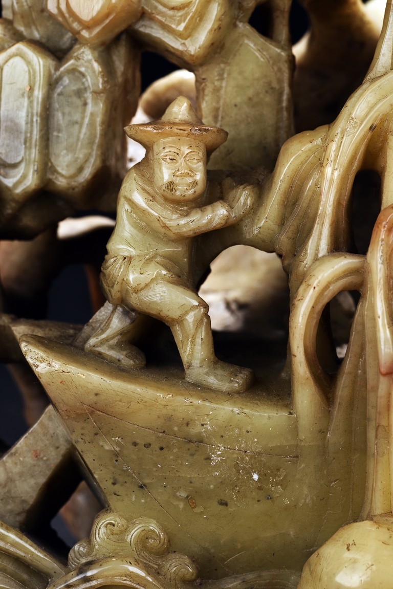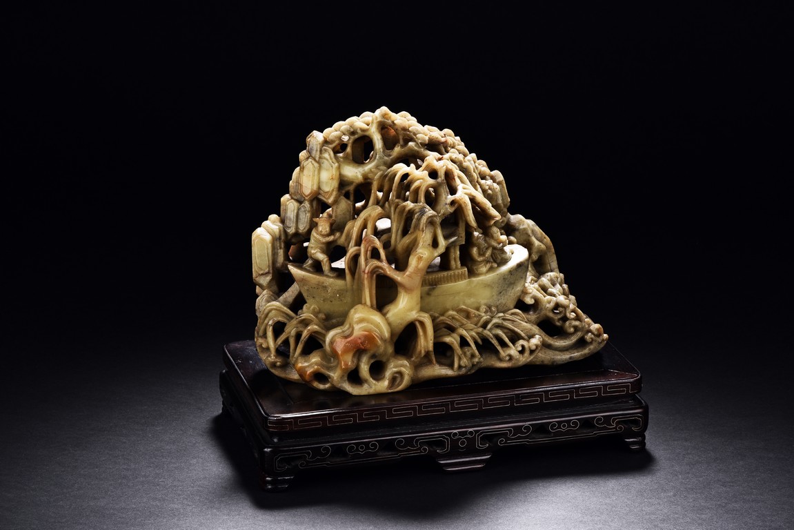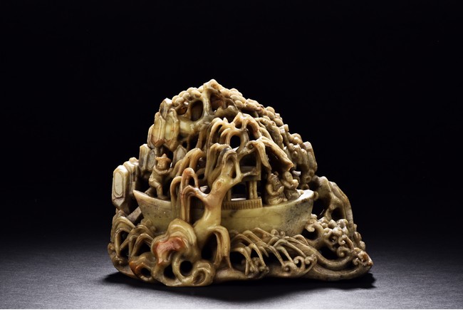 A SHOUSHAN STONE CARVING OF BOAT 壽山石雕船山子擺件