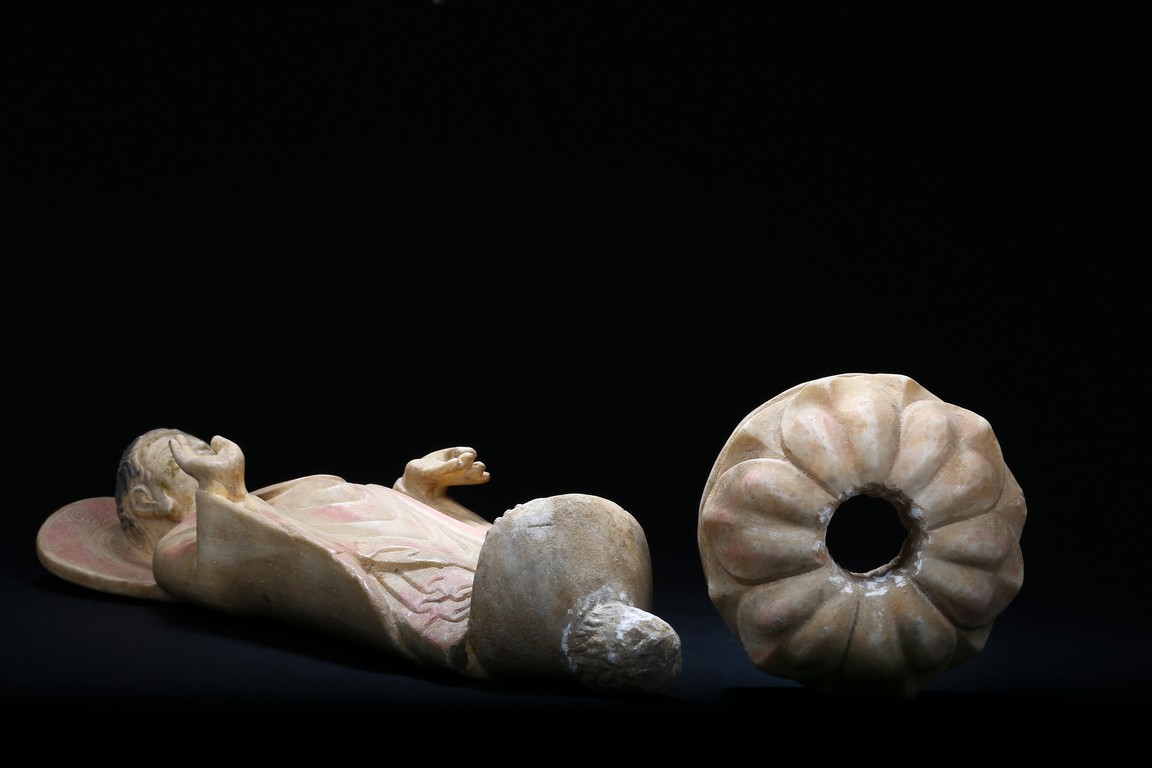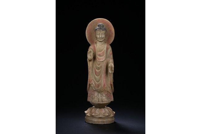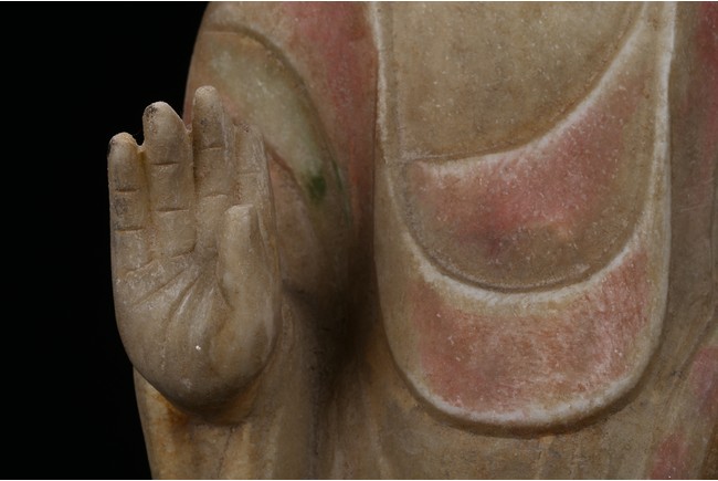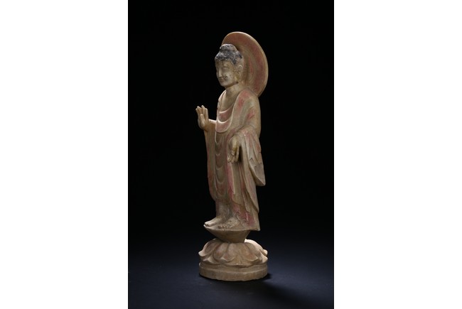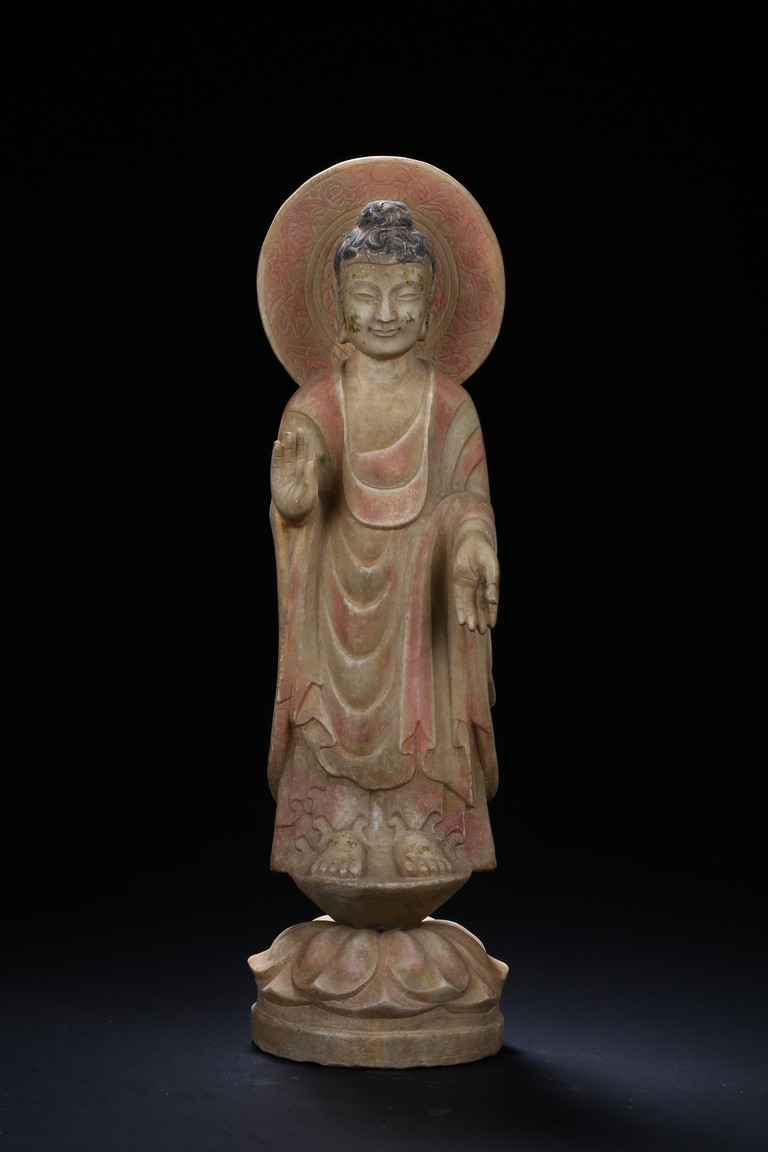 A MARBLE CARVED STANDING BUDDHA STATUE 漢白玉雕佛站像