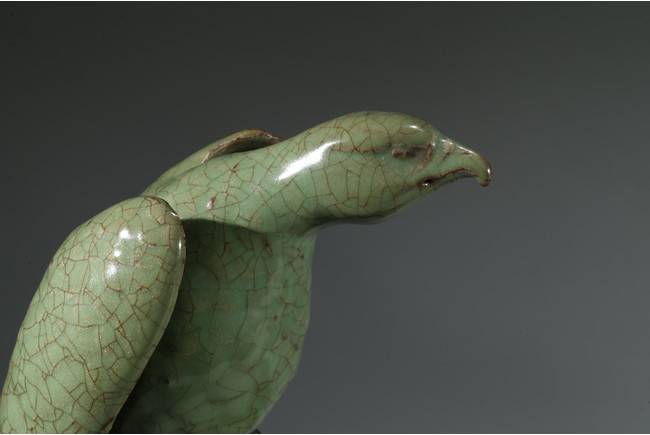 Each depicting a celadon glazed eagle standing on rocky outcrop.
