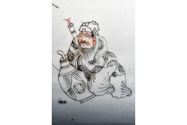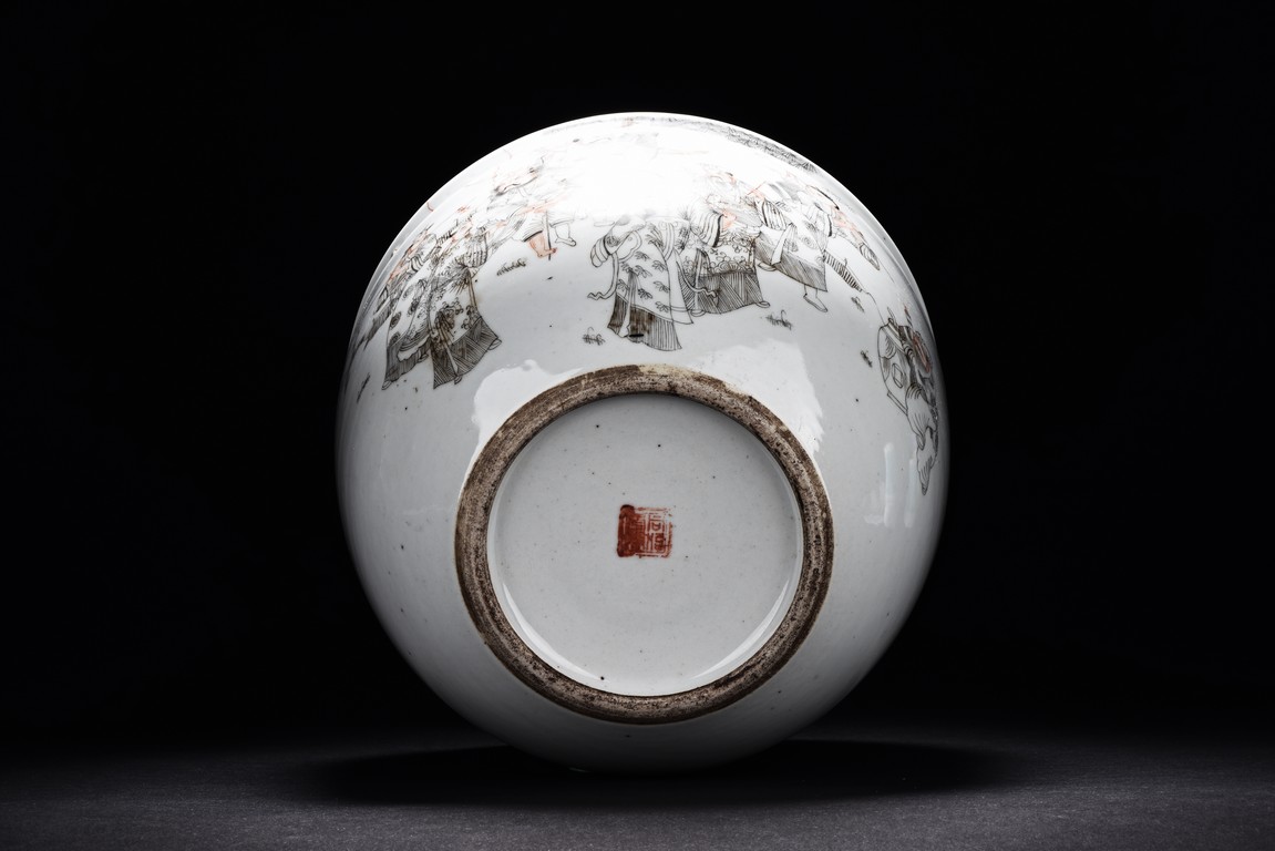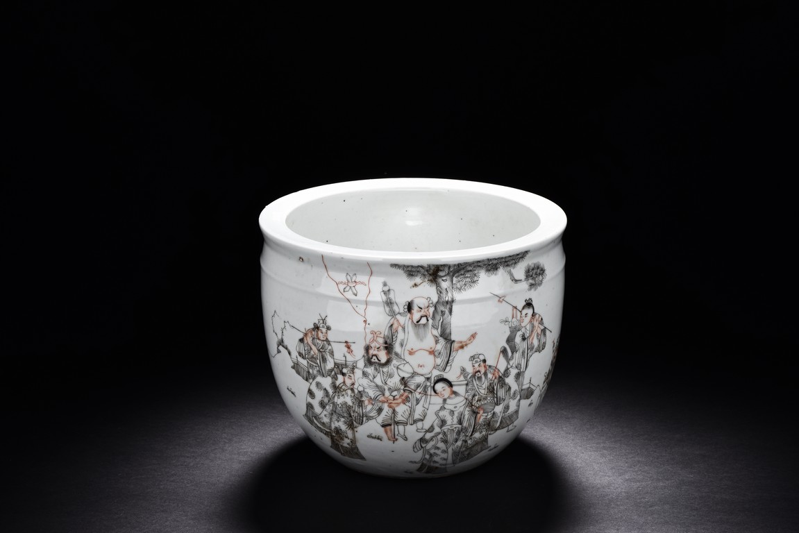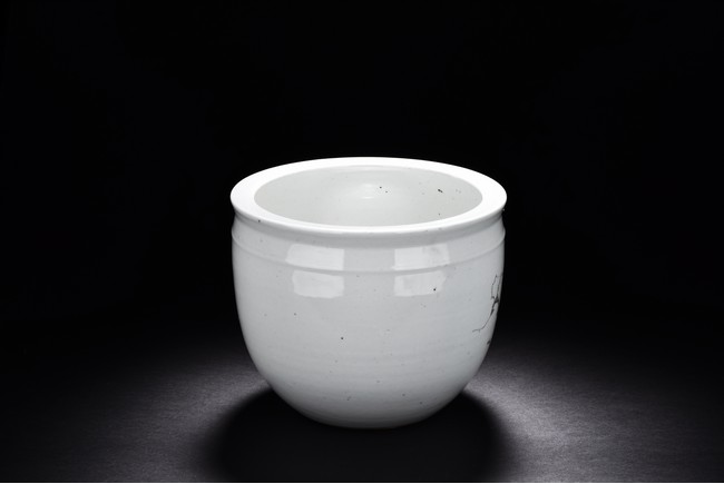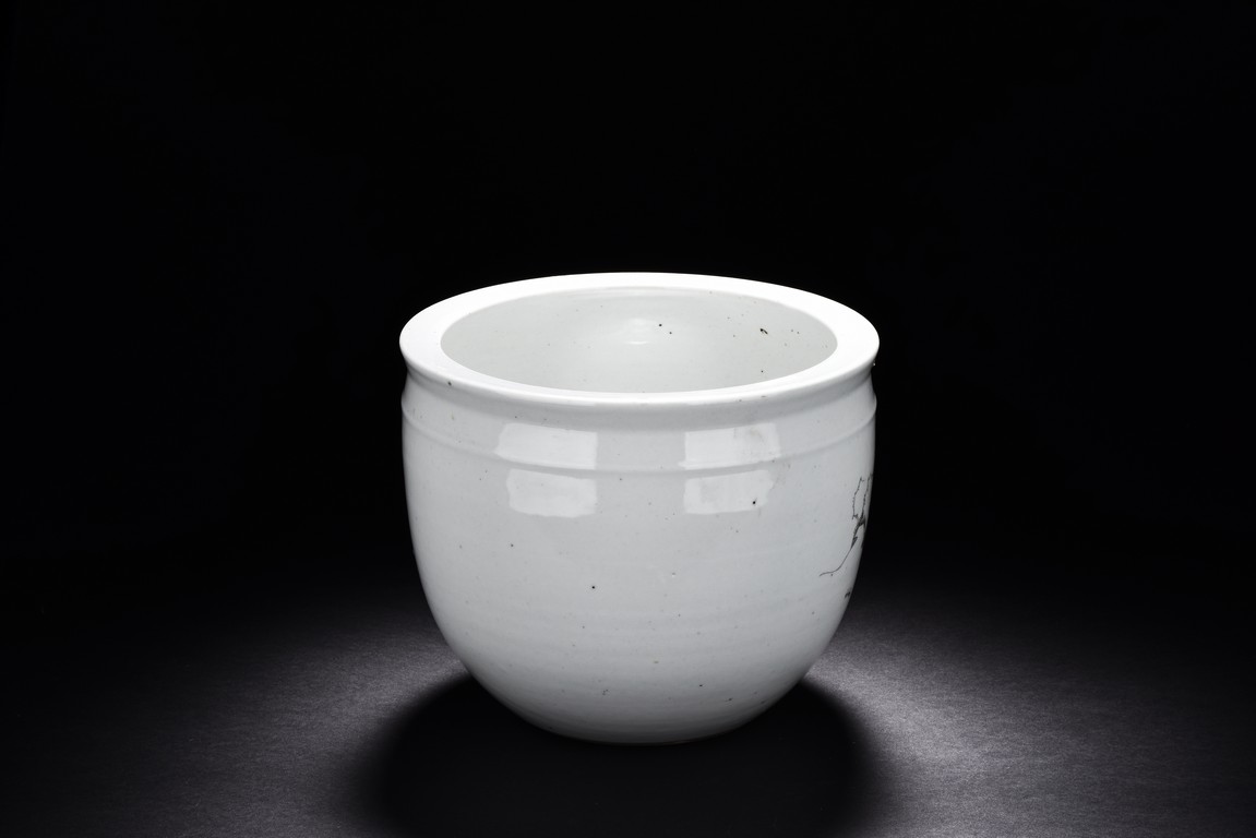 A WHITE GLAZED 'FIGURES' JAR 白釉八仙花盆