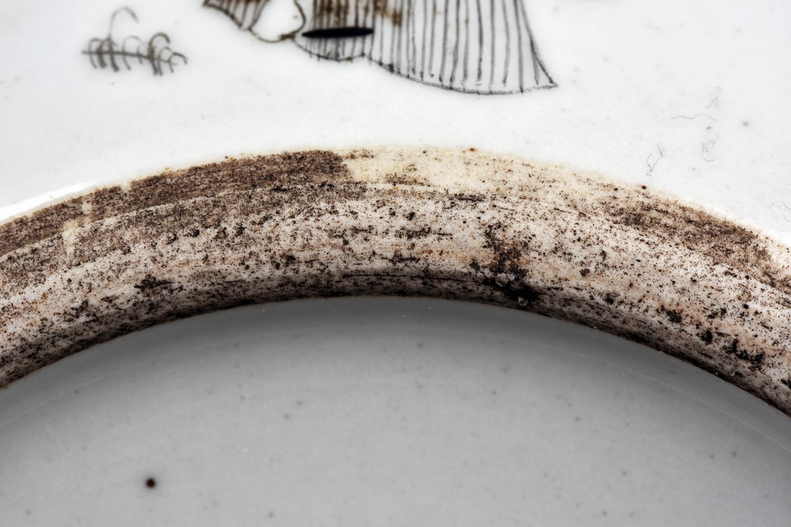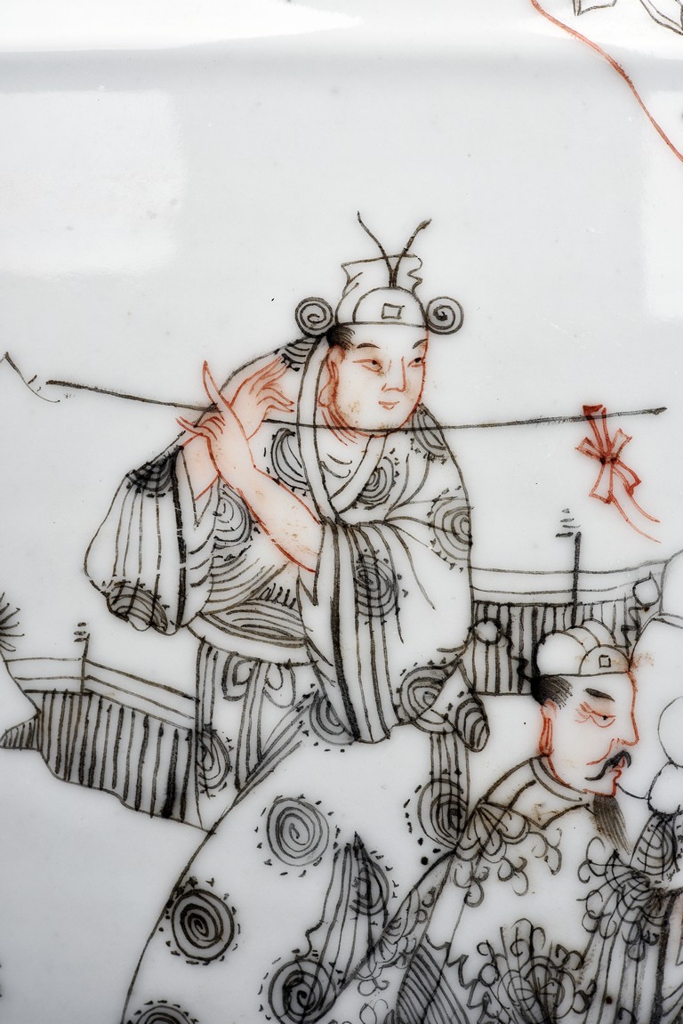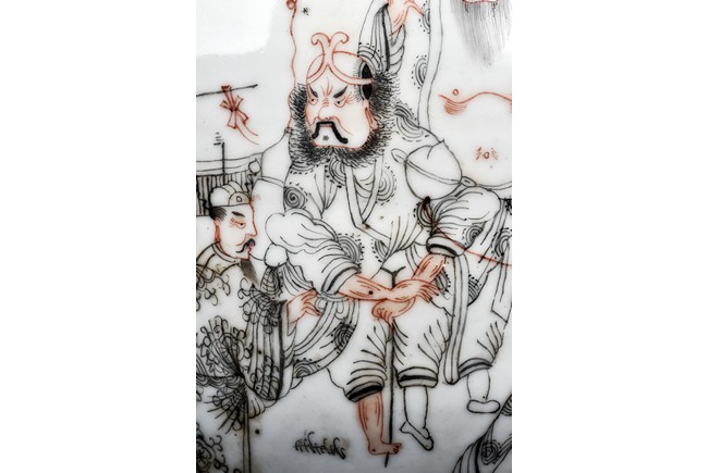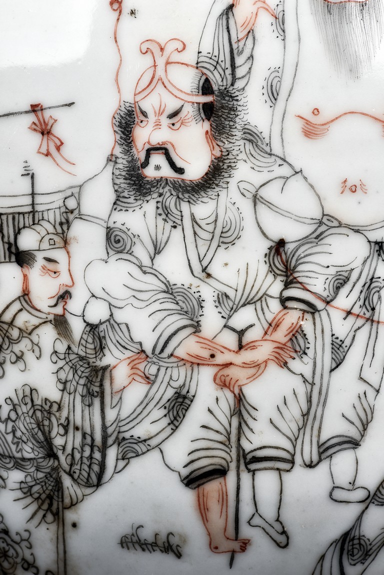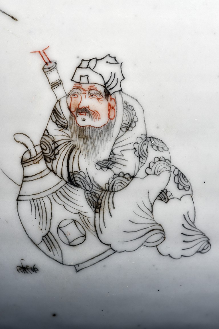A WHITE GLAZED 'FIGURES' JAR 白釉八仙花盆