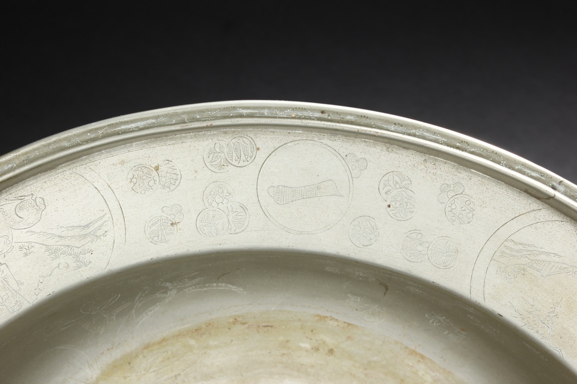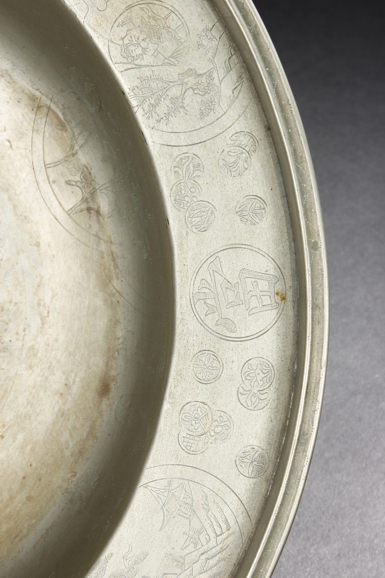 A PEWTER WASH BASIN 晚晴民國 福祿壽紋錫盆