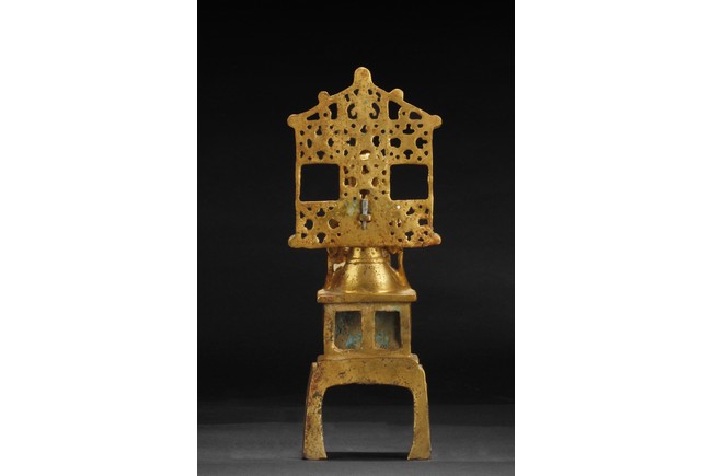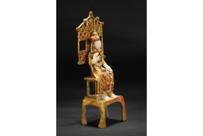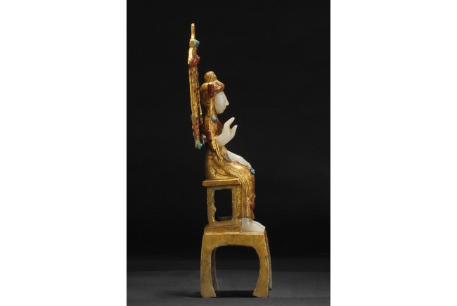 A GILT BRONZE INLAID JADE FIGURE OF GUANYIN 鎏金鑲玉觀音