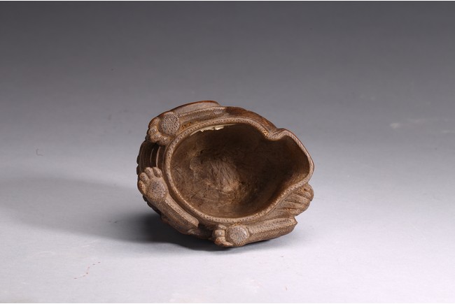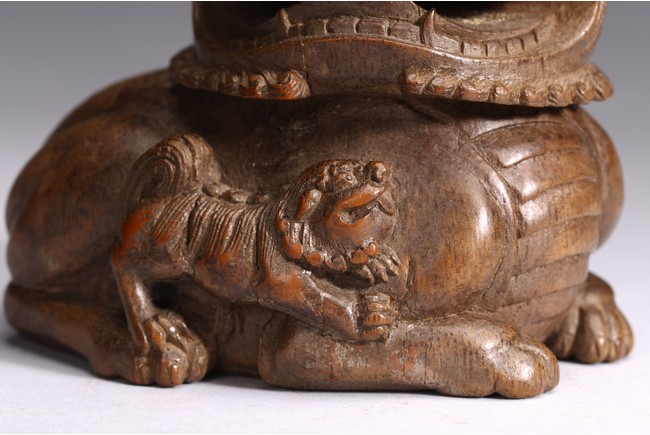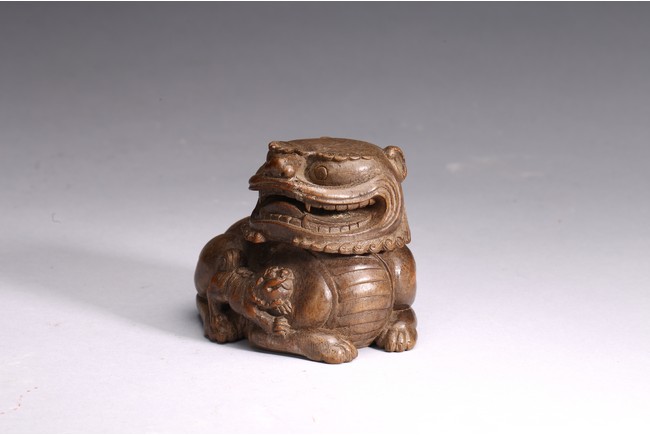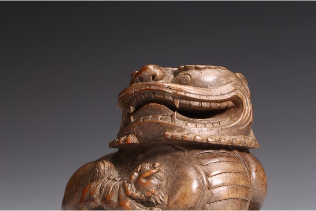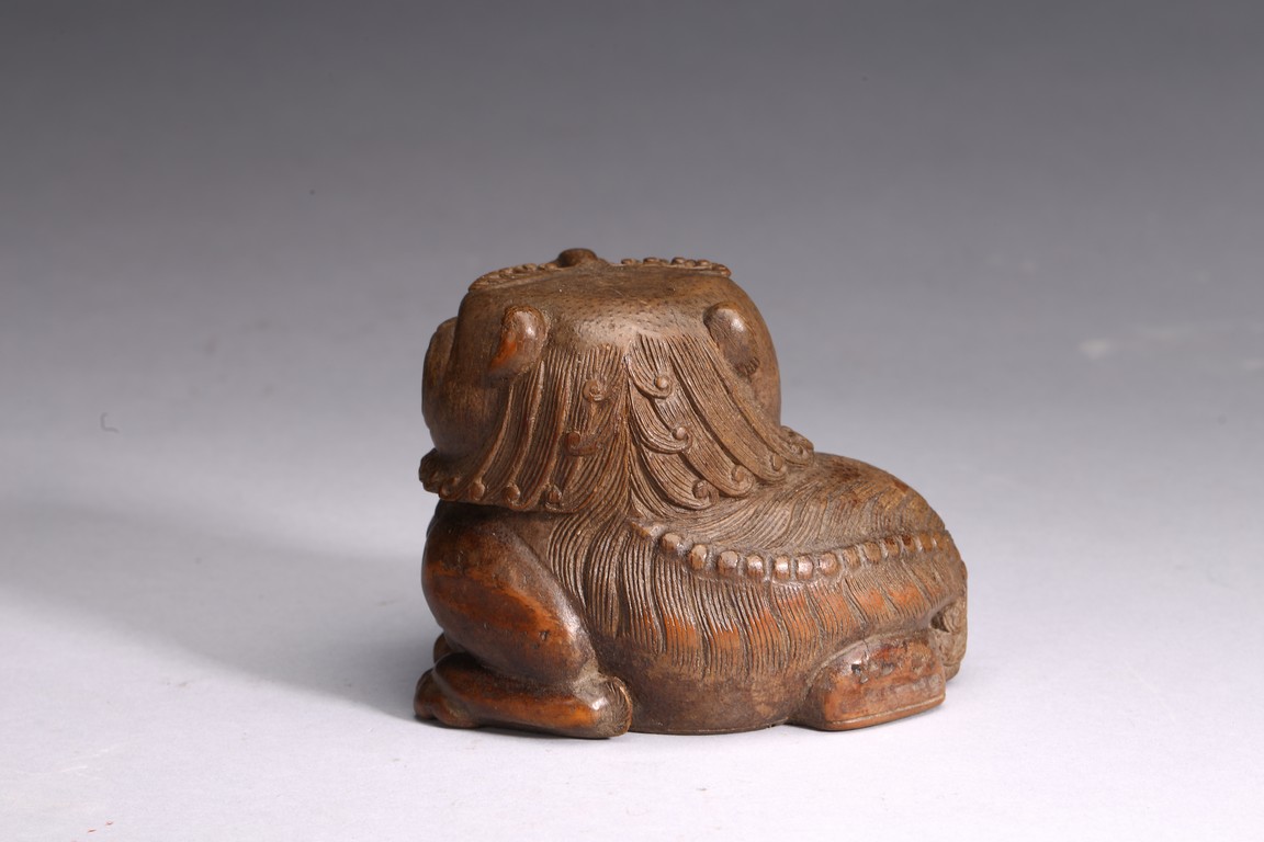 Qing Dynasty period. Carved in the form of recumbent buddhist lion with head turned to the side watching over a younger lion playing on its feet.