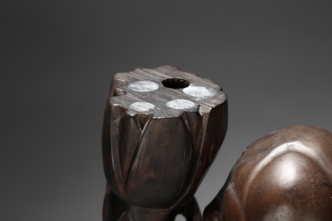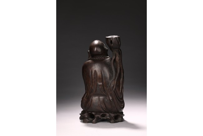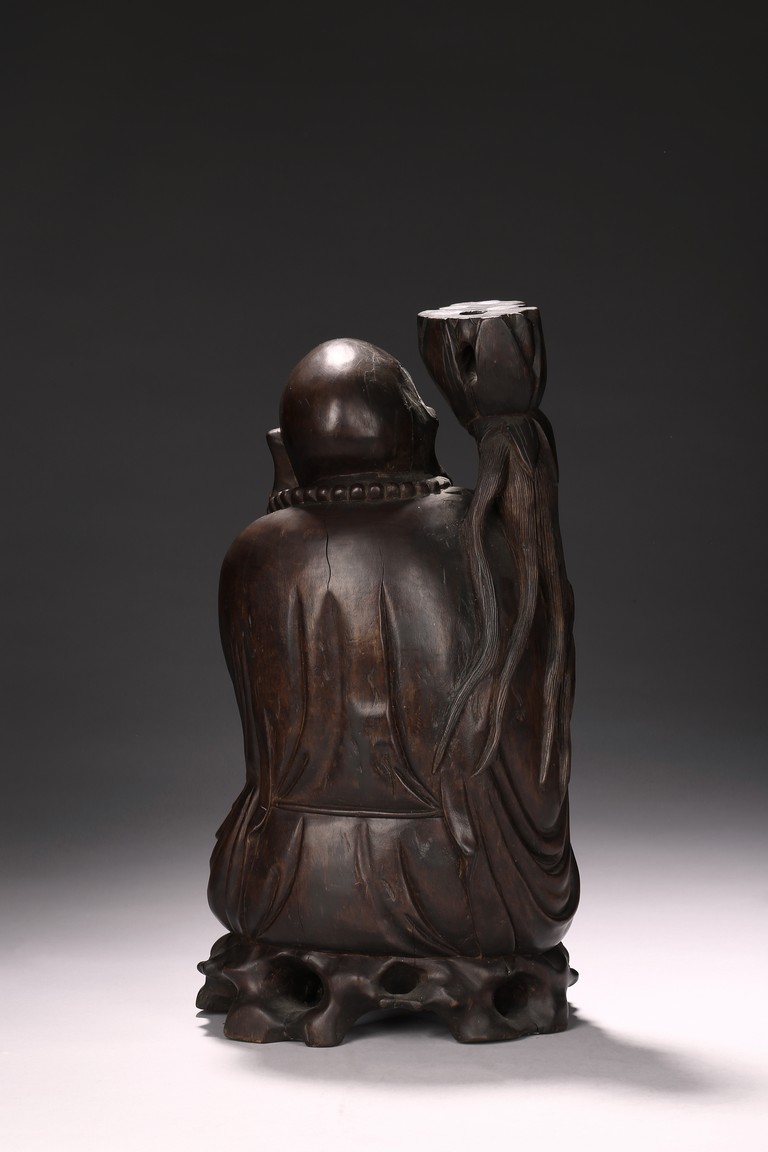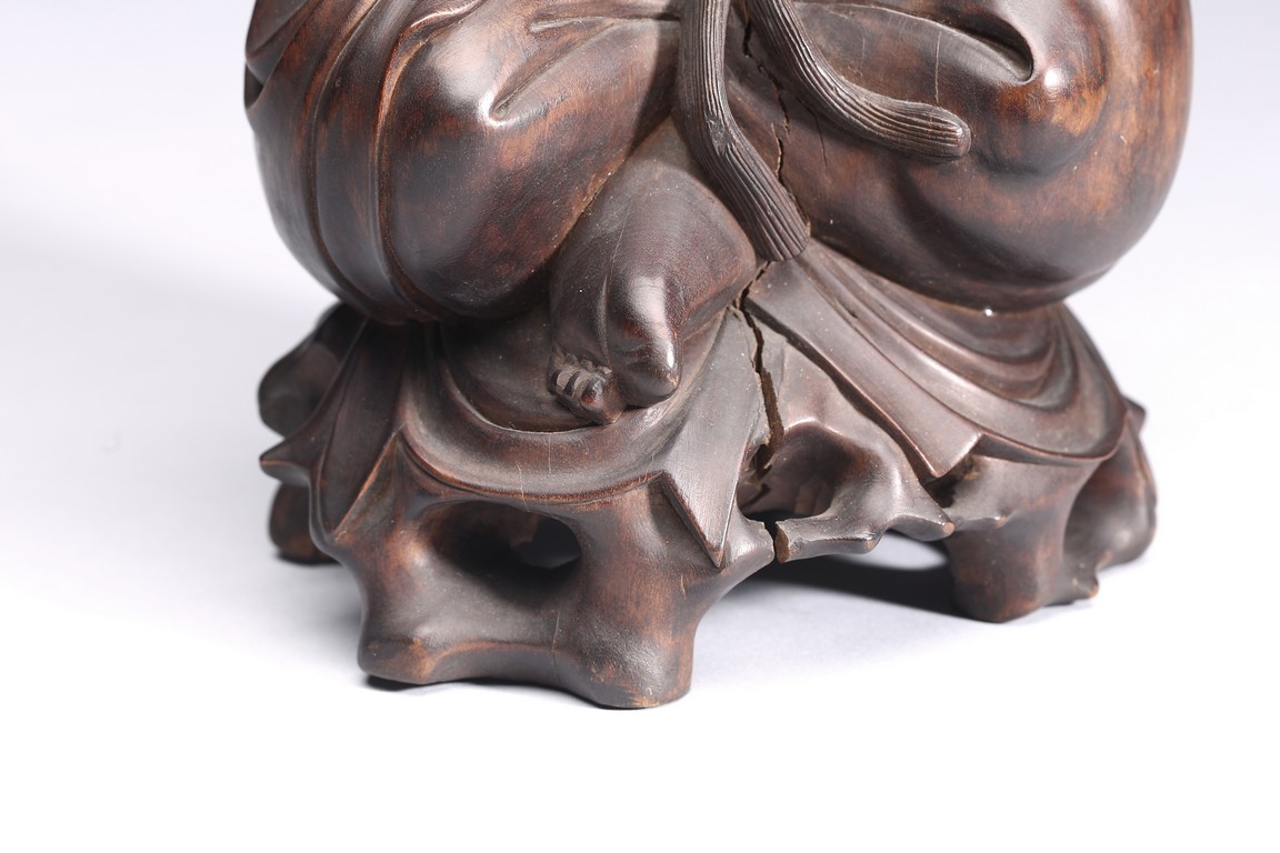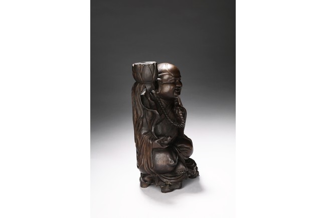 Republic period.The laughing monk is shown holding beaded necklace on left hand, wearing a large robe, joyful face flanked by two long earlobes.