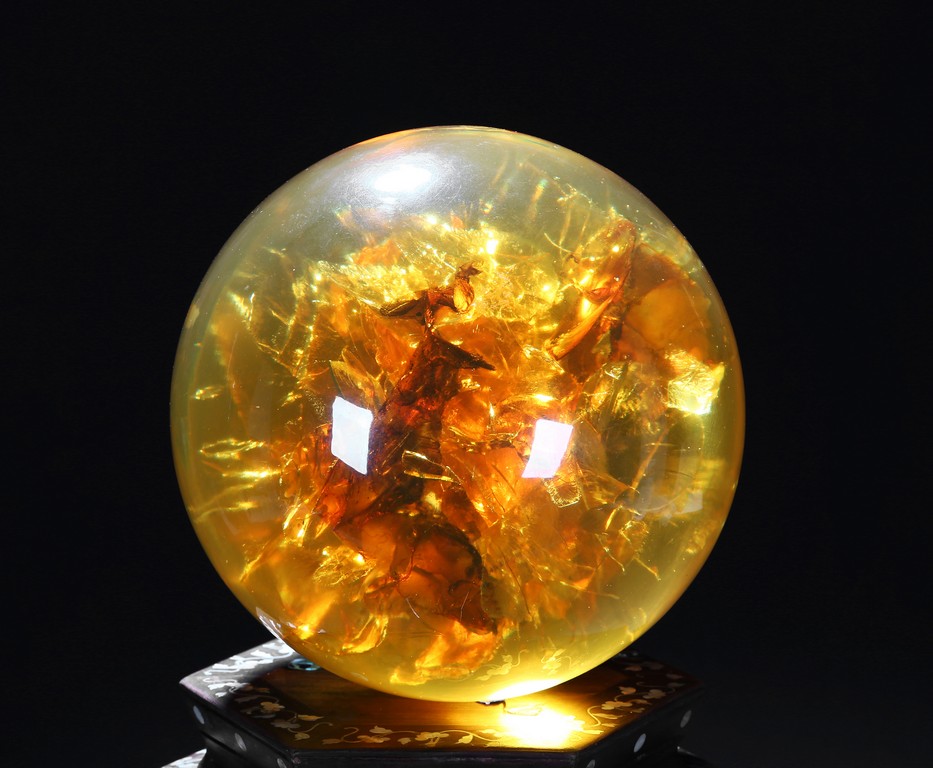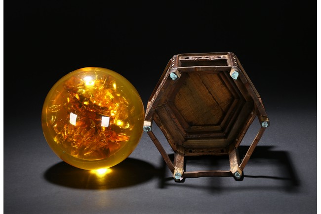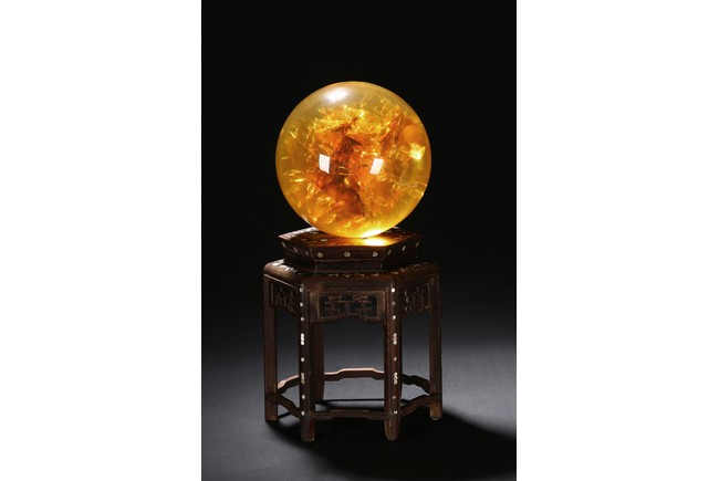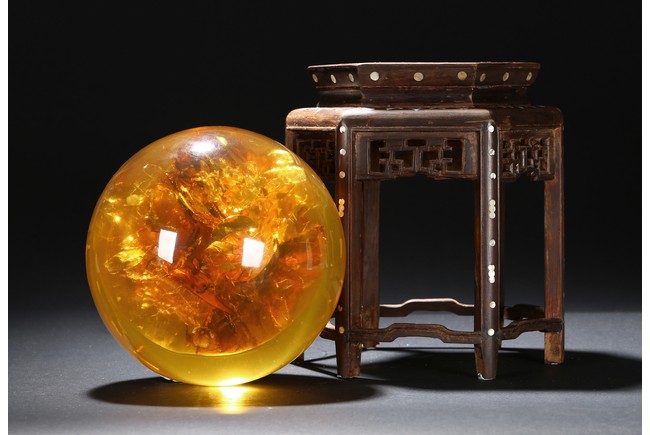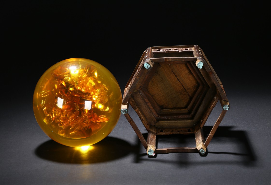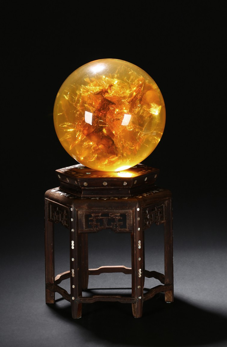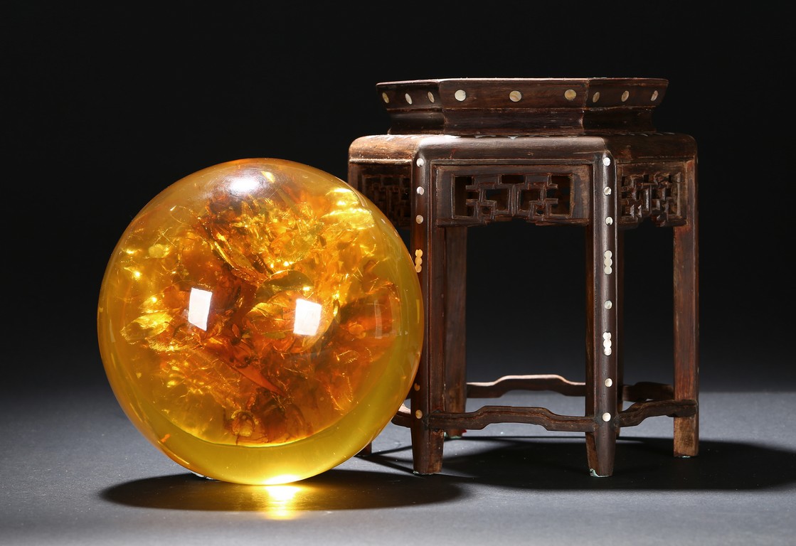 A YELLOW AMBER-LIKE GLOBE DISPLAY 仿琥珀球型擺件