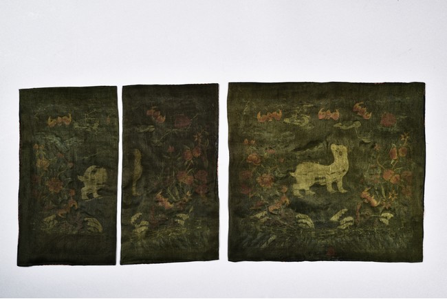 A PAIR OF EMBROIDERED SILK MILITARY OFFICIAL'S RANK BADGES 刺繡補子兩件