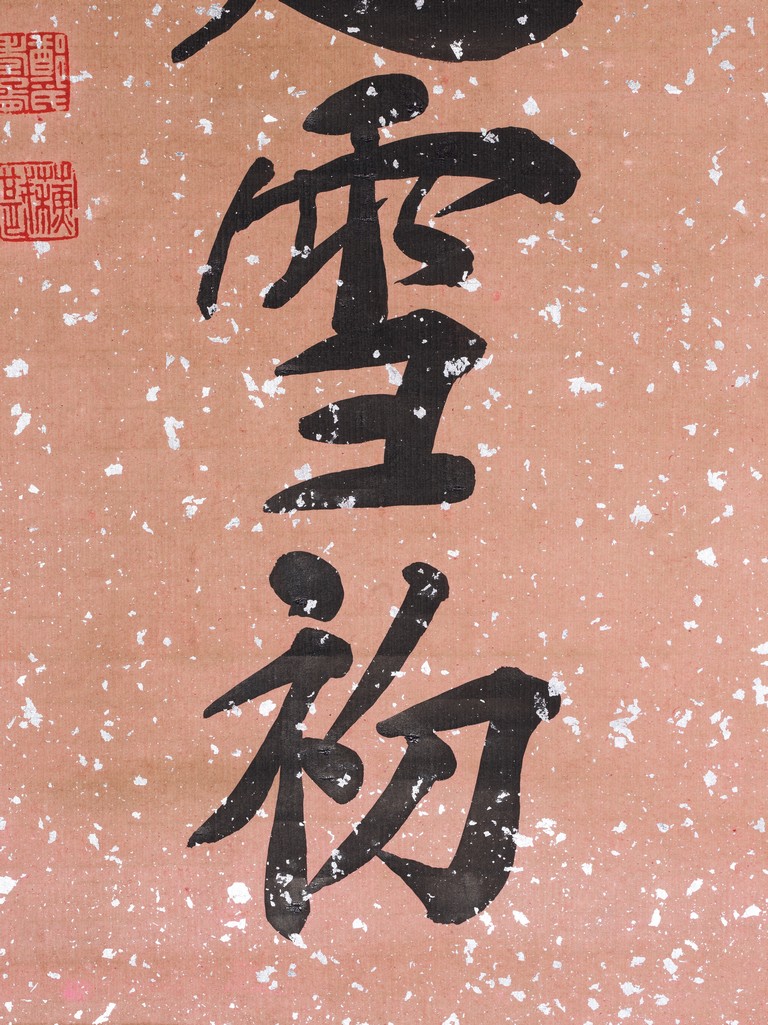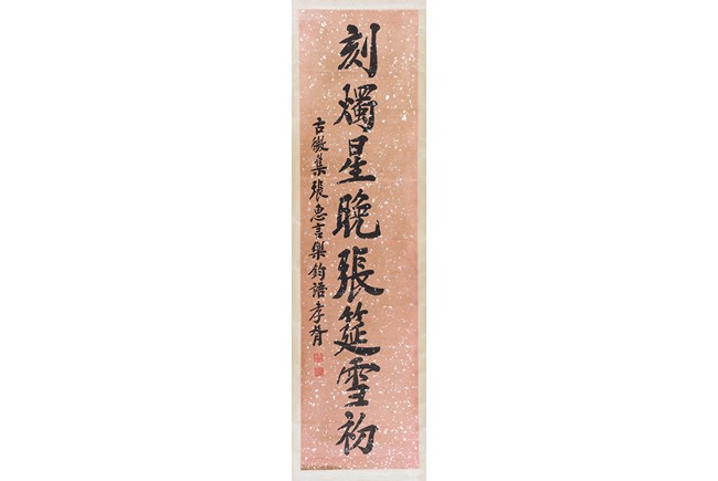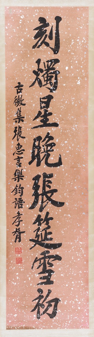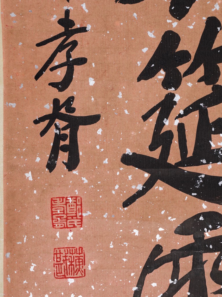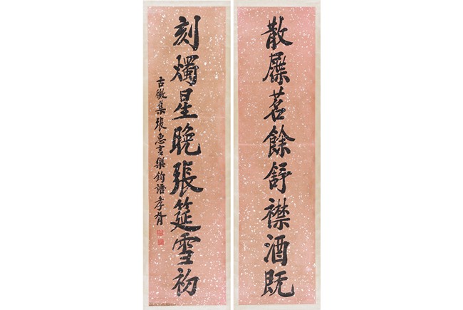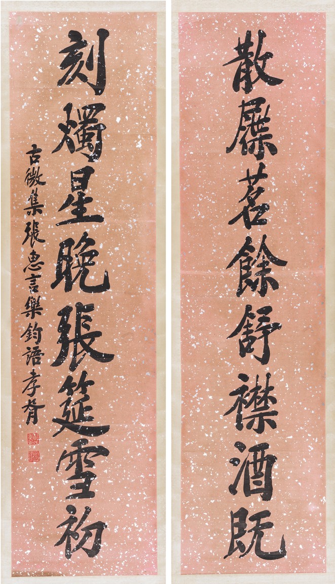 Ink on paper, calligraphy couplet, hanging scrolls, signed, with two seal marks. Attributed to Zheng Xiaoxu.