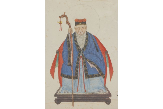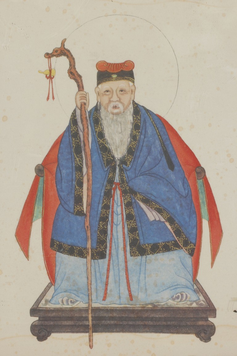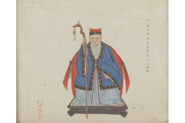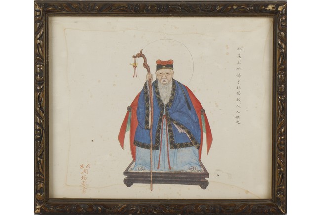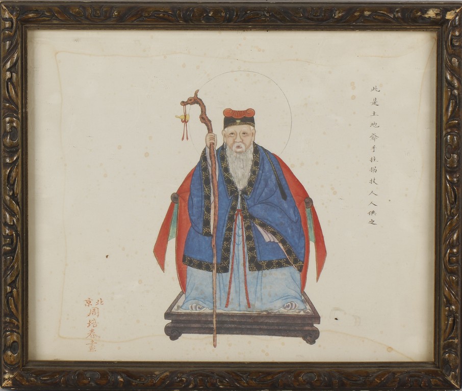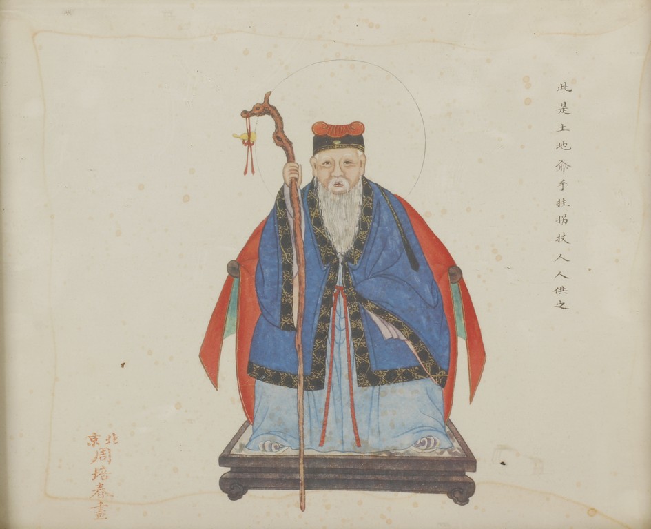 A COLOR AND INK ON PAPER PAINTING 周佩春 土地公人物畫 設色紙本
