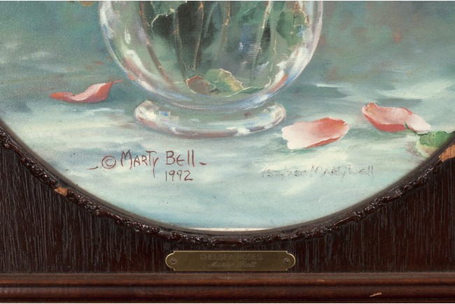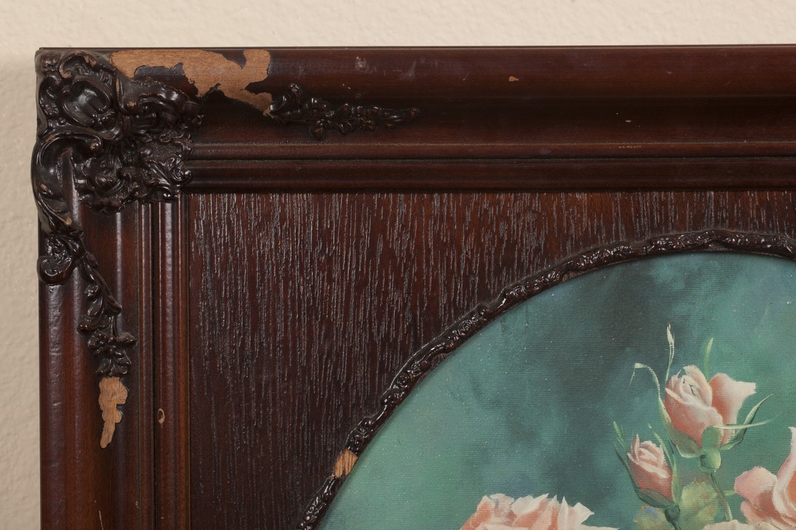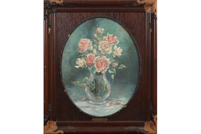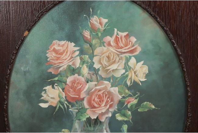 AN OIL PAINTING OF FLOWERS 玫瑰花瓶油畫