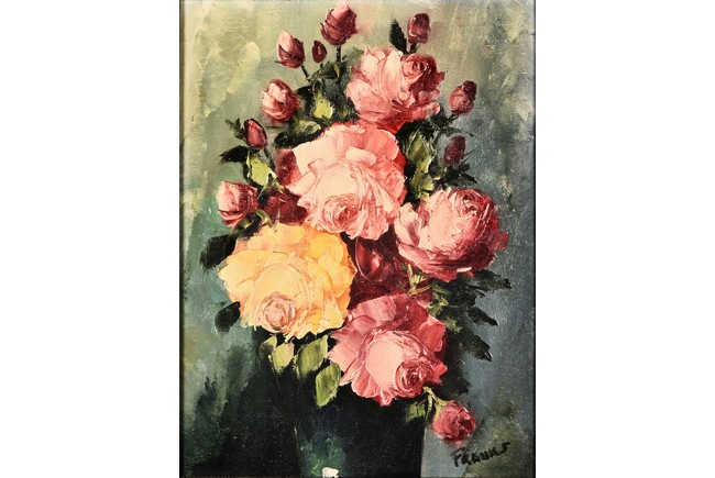 AN OIL PAINTING OF FLOWERS 油畫玫瑰