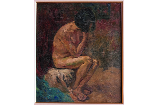 Oil on canvas. Nude. Framed. Signed. Attributed to Wu Zuoren.