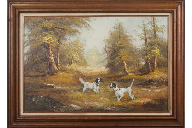 AN OIL ON CANVAS LANDSCAPE PAINTING 風景動物油畫