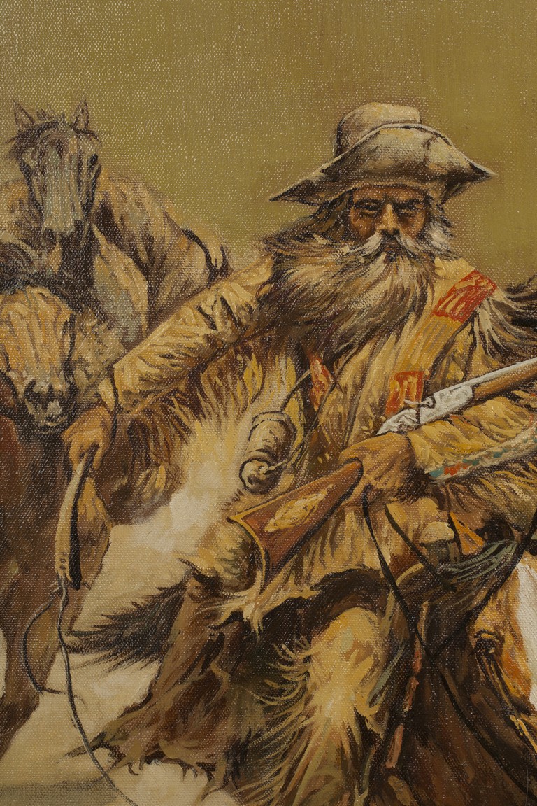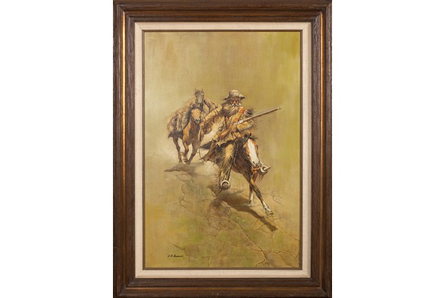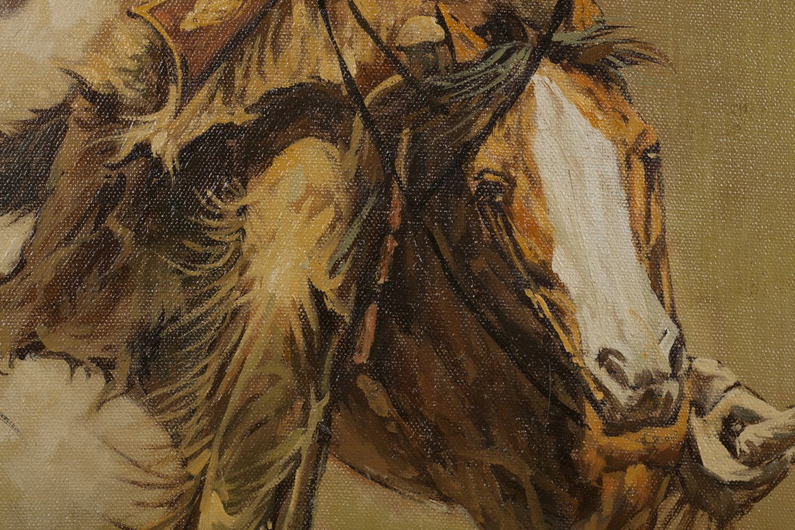 AN OIL ON CANVAS 'HORSE RIDERS' PAINTING 人物油畫