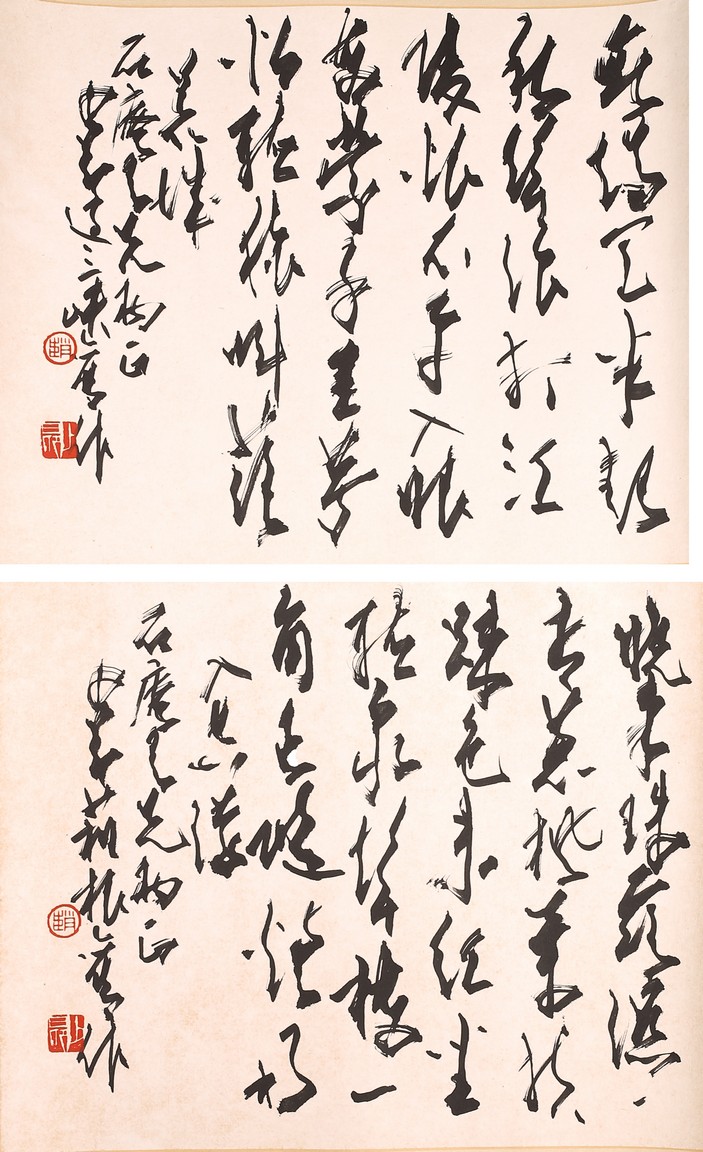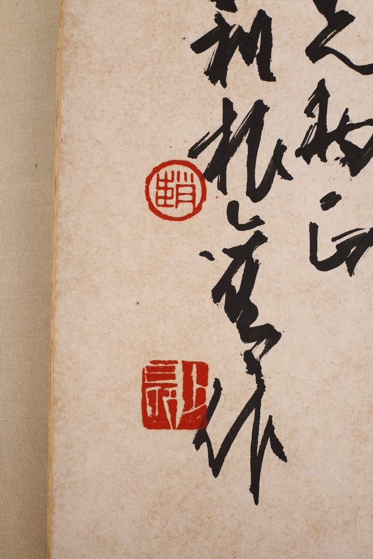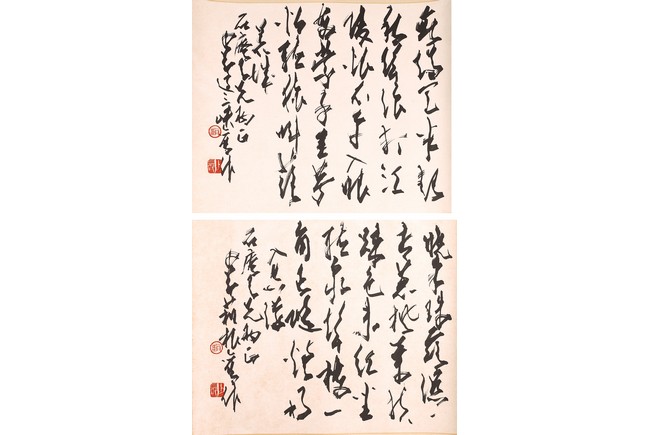 Ink on paper. Cursive script calligraphies. Both signed and with two seal marks attributed to Zhao Shaoang.