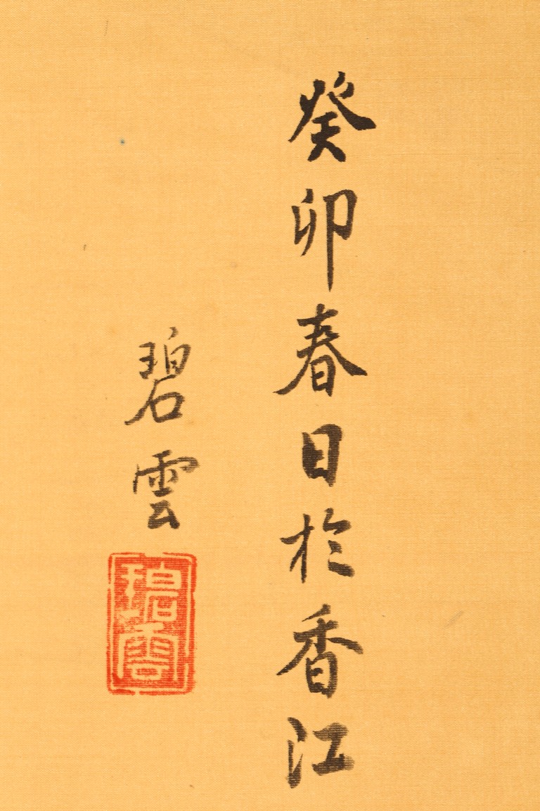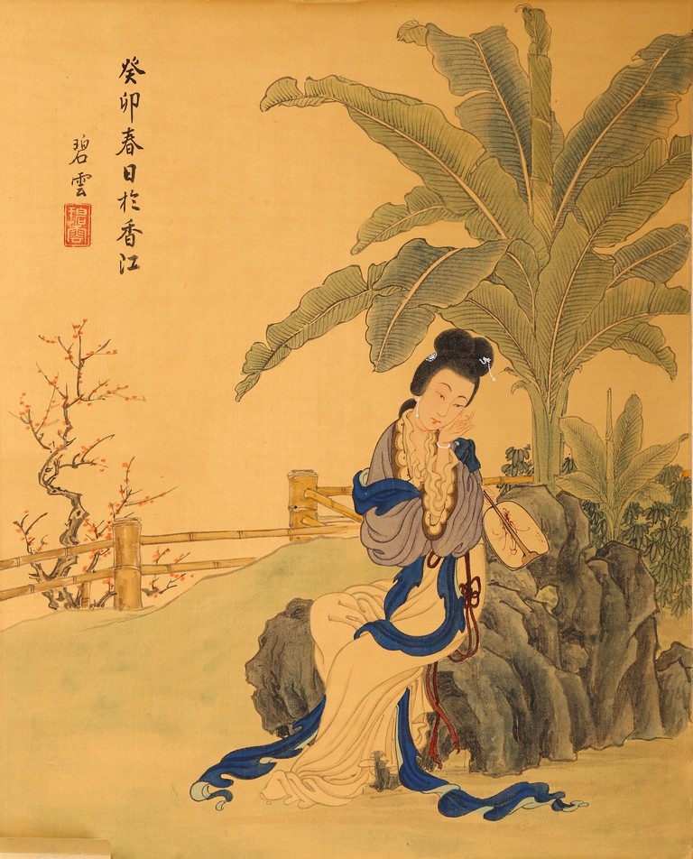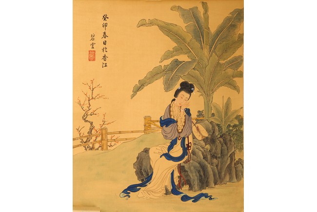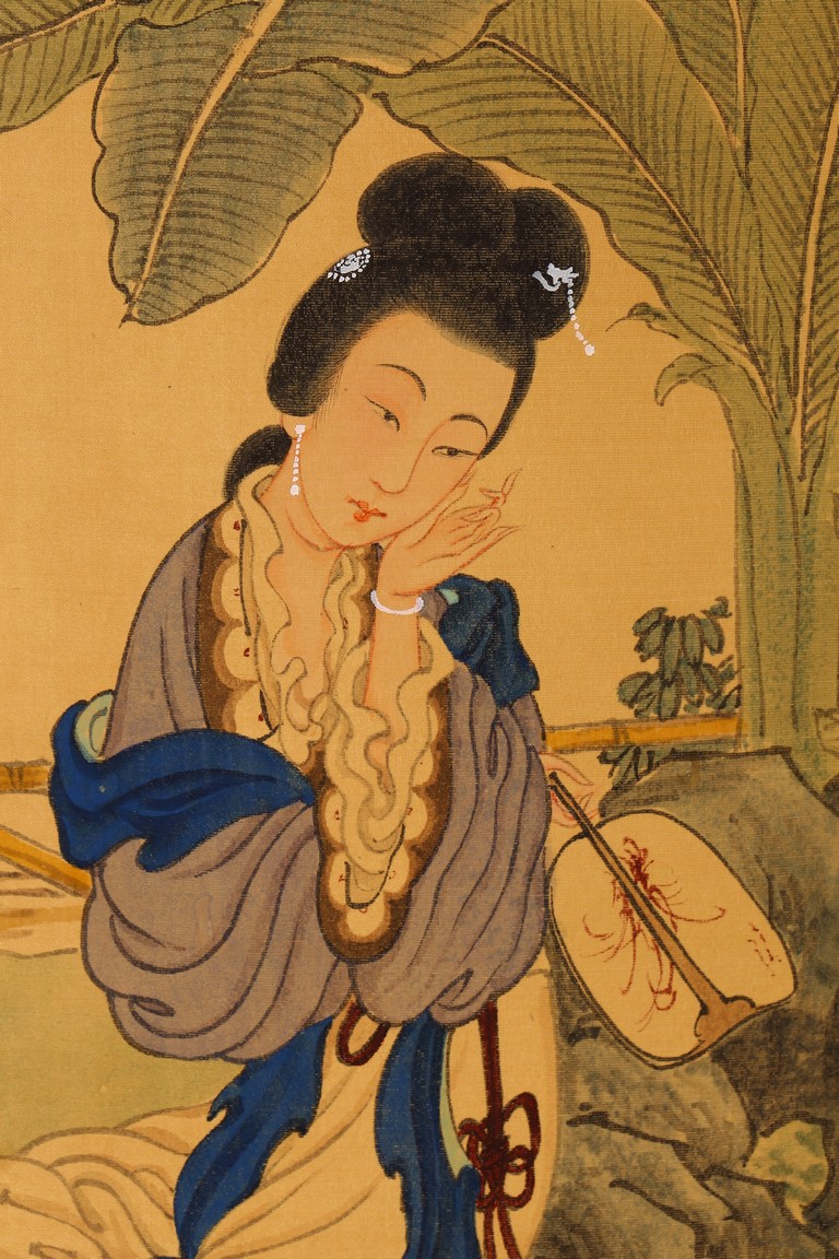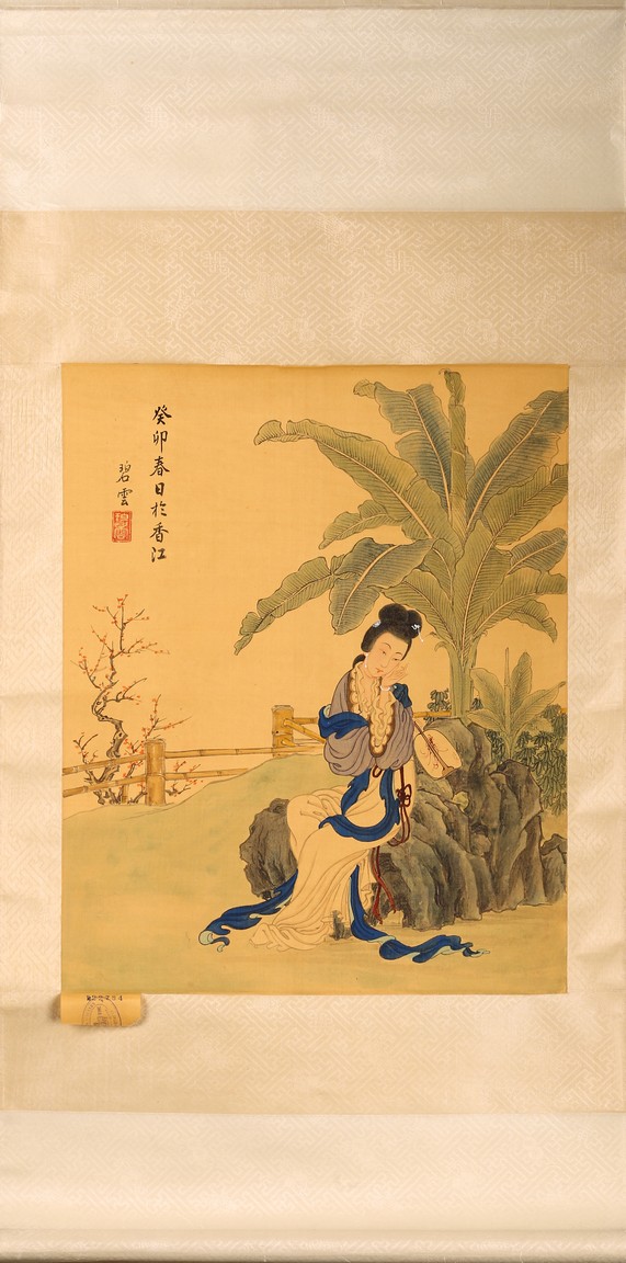 Color and ink on silk. Beauty figure. Hanging scroll. Inscribed and signed with one seal mark.