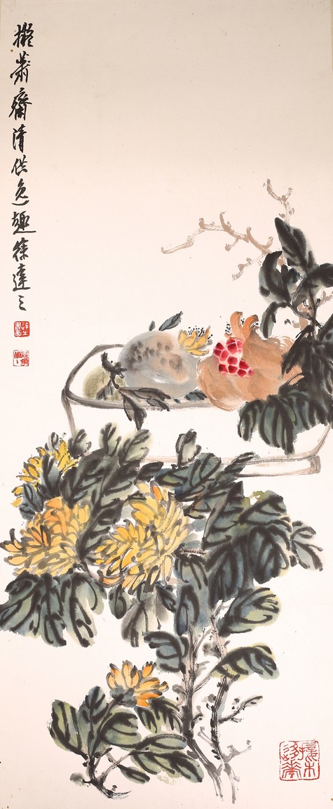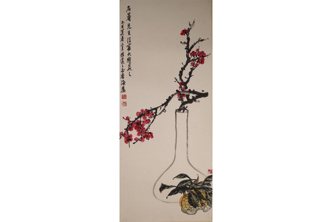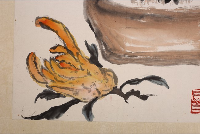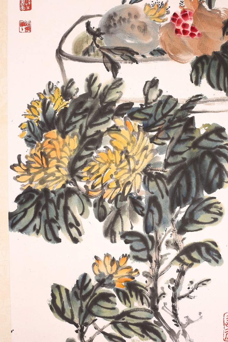 Set of six color and ink on paper paintings. Flowers. Each inscribed and signed with three seal marks.