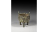 A BRONZE TAOTIE TRIPOD DING VESSEL