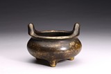 A GILT-SPLASHED BRONZE TRIPOD CENSER