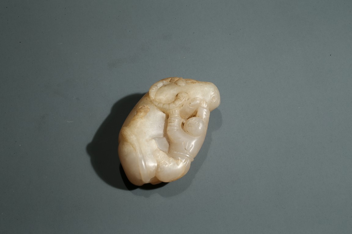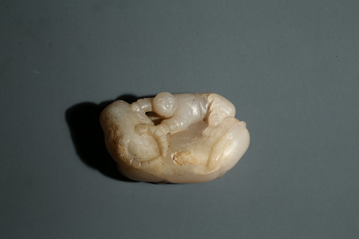 A JADE CARVING OF BOY AND BUFFALO 明 白玉童子牧牛