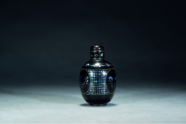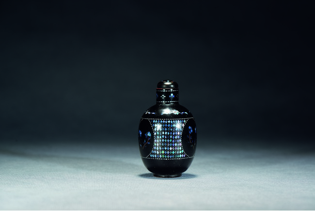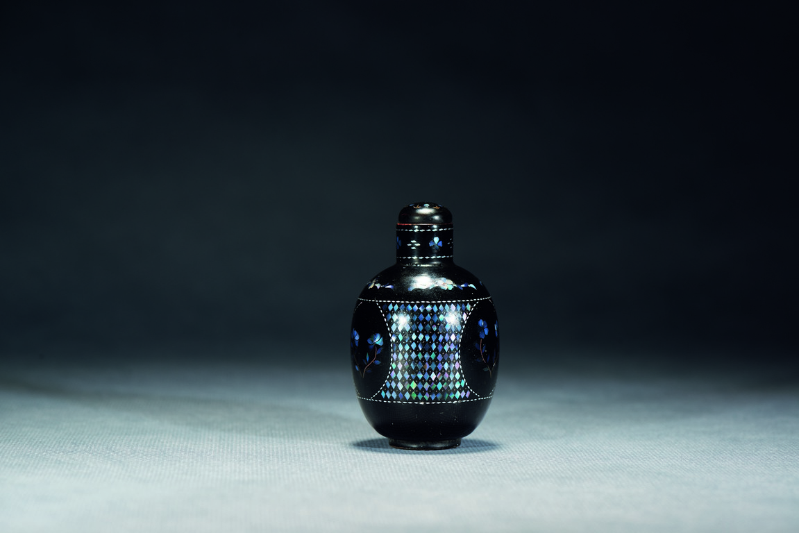 A BLACK LACQUERED MOTHER-OF-PEARL SNUFF BOTTLE    清 黑漆鑲螺鈿鼻煙壺