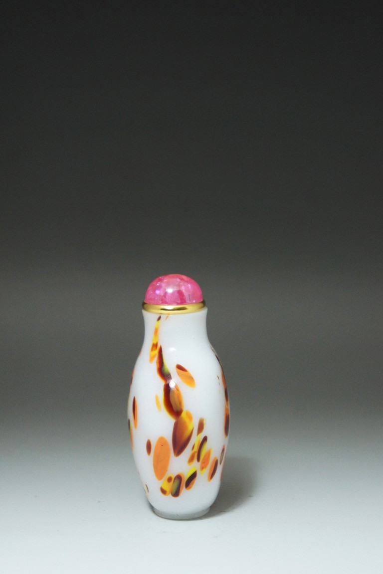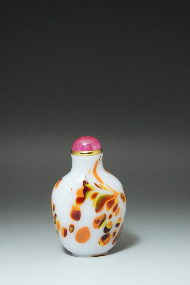 A CARVED WHITE GLASS SNUFF BOTTLE 清 白料多彩鼻煙壺